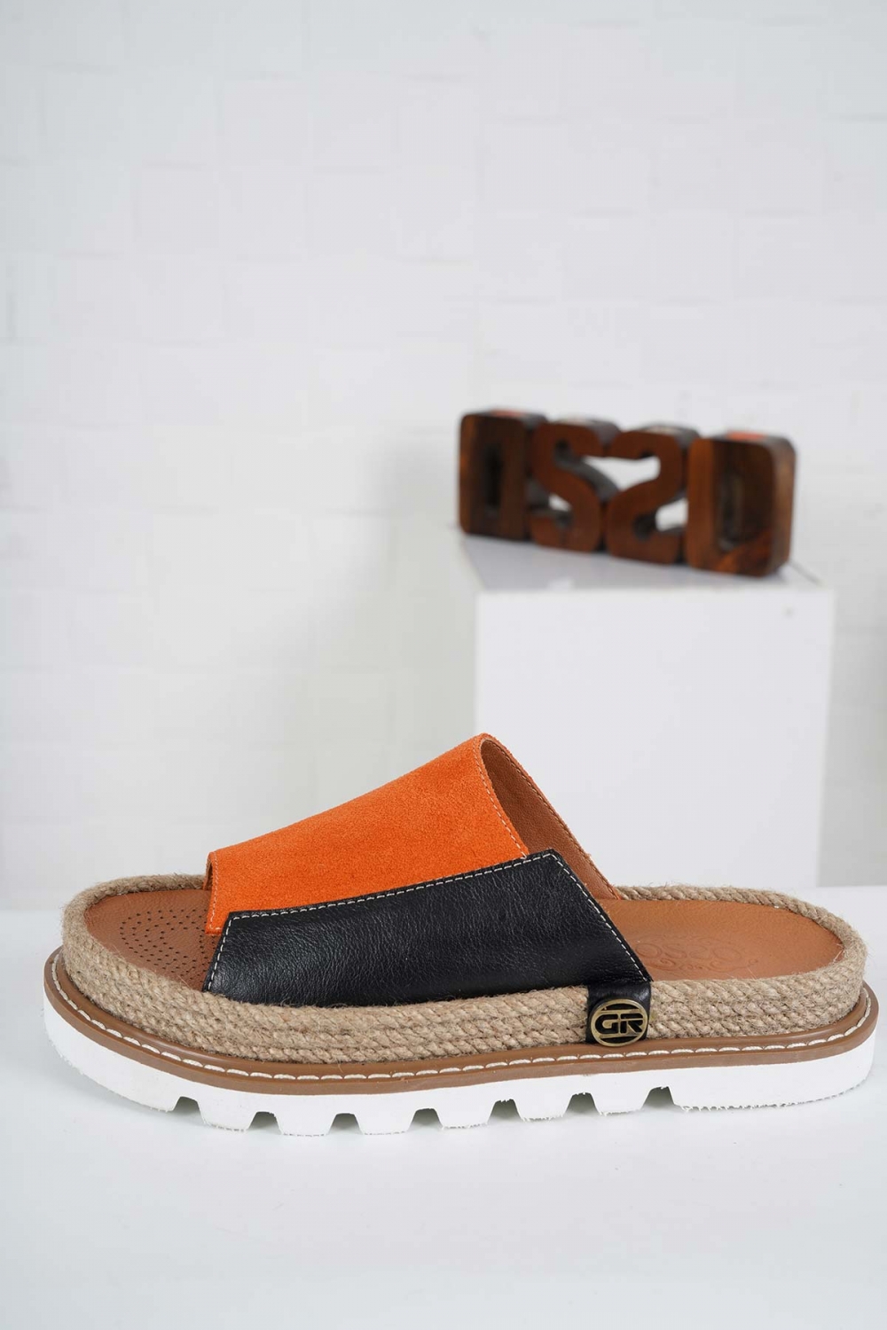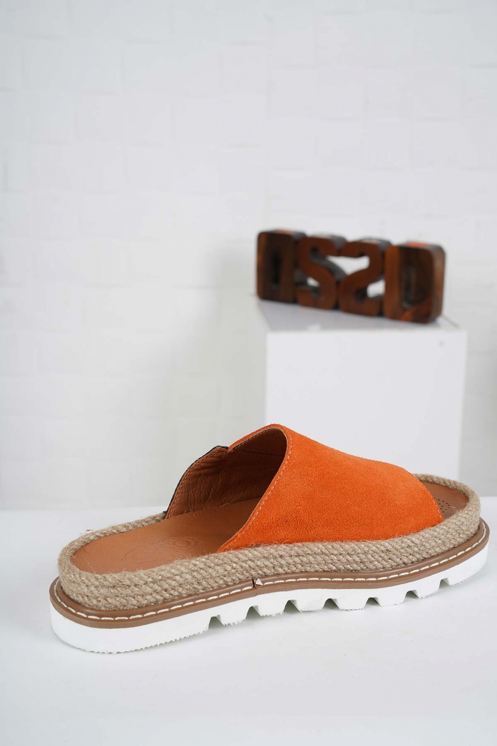 Hakiki Deri Turuncu Süet-Siyah Kadın Casual Terlik 241111601