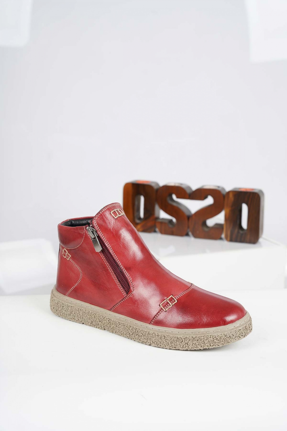 Hakiki Deri Vişne Çürüğü Kadın Casual Bot 232220202