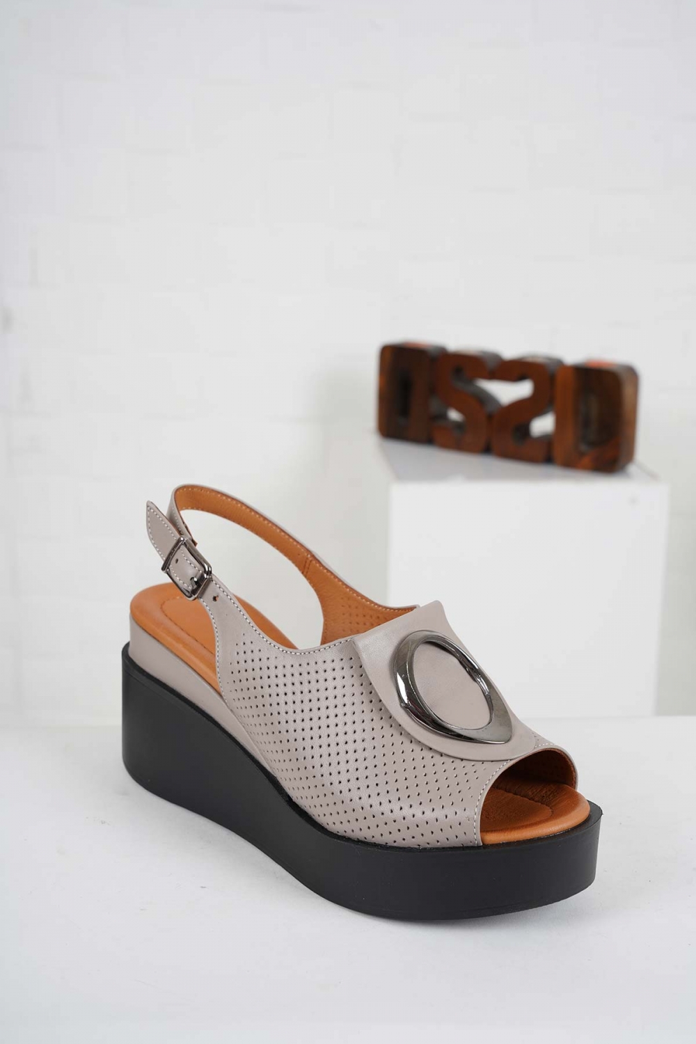 Hakiki Deri Titanyum Kadın Burun Kapalı Sandalet 261141507