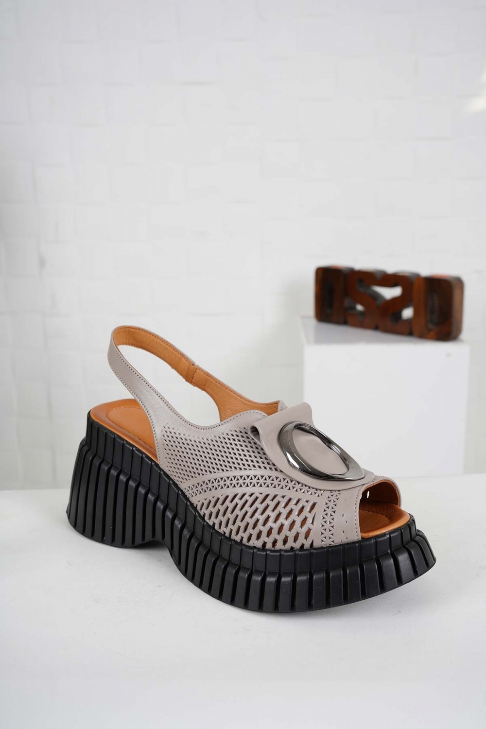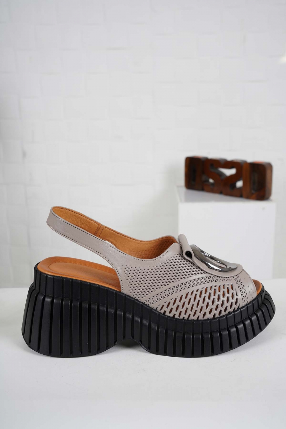Hakiki Deri Titanyum Kadın Burun Kapalı Sandalet 261141507
