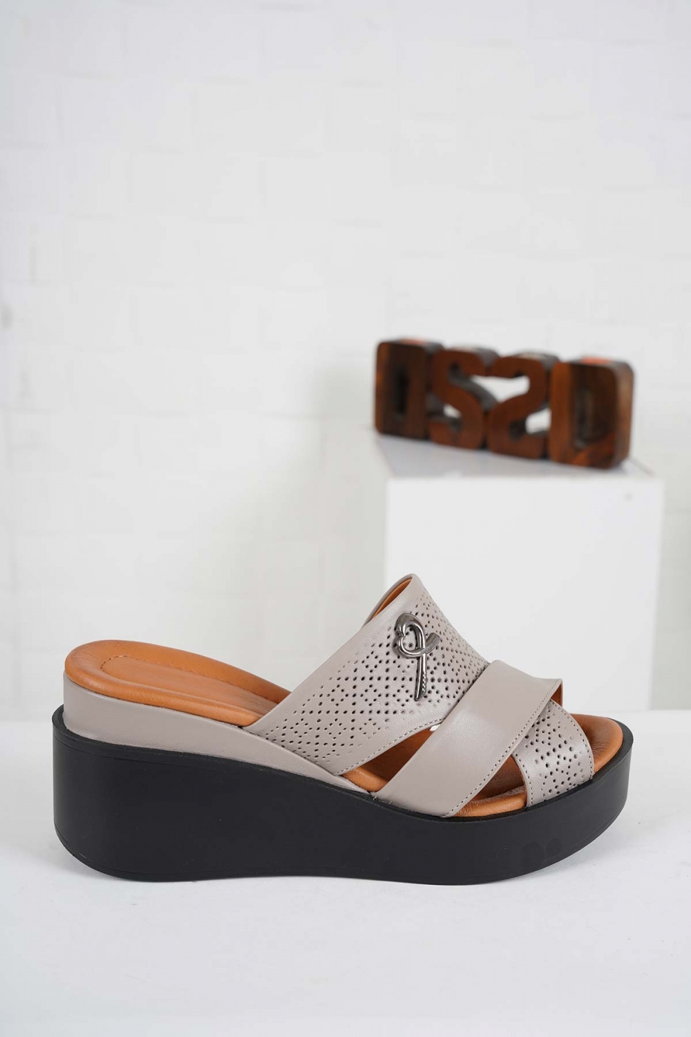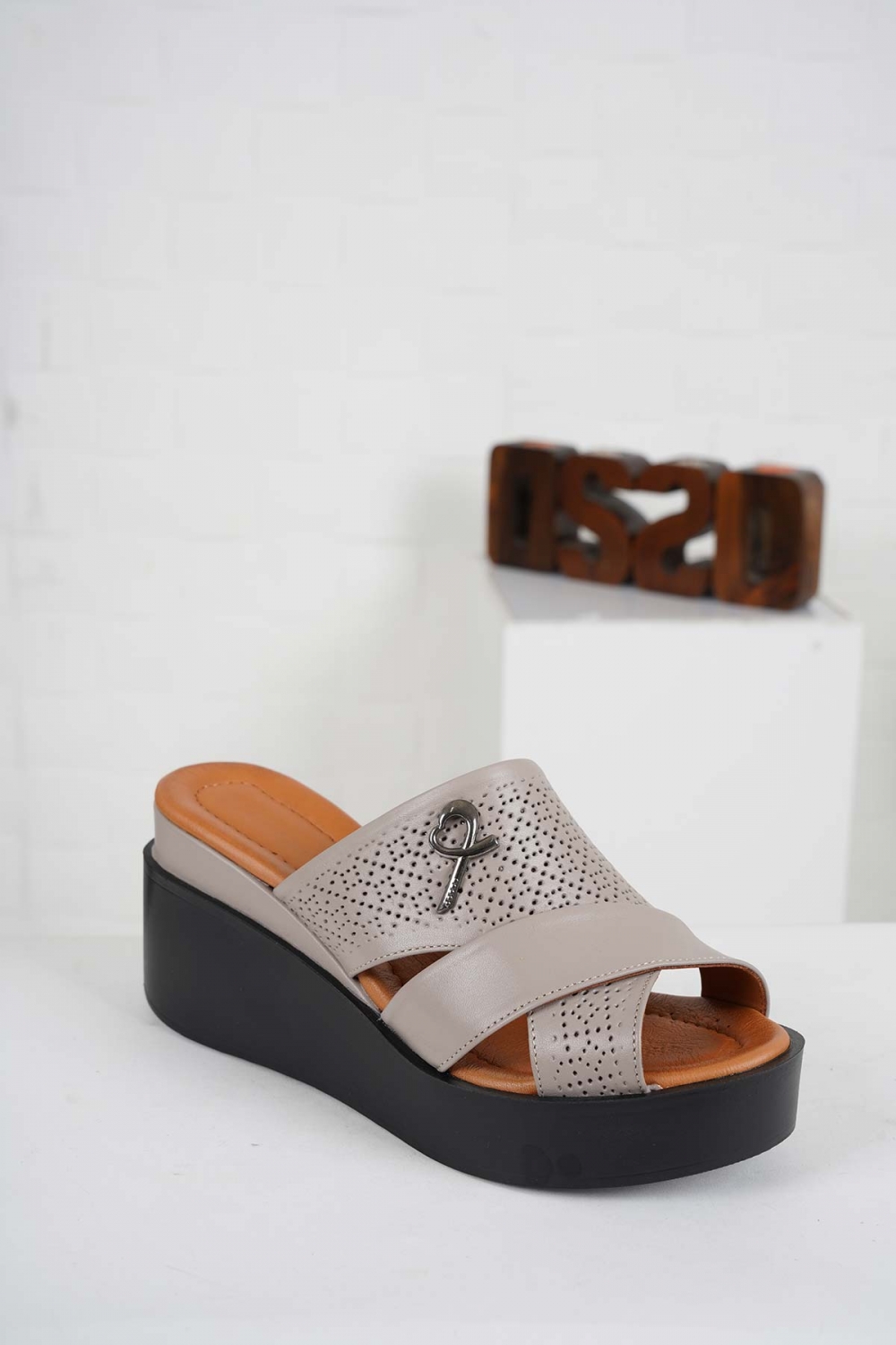 Hakiki Deri Pudra Kadın Dolgu Topuklu Terlik 261114602