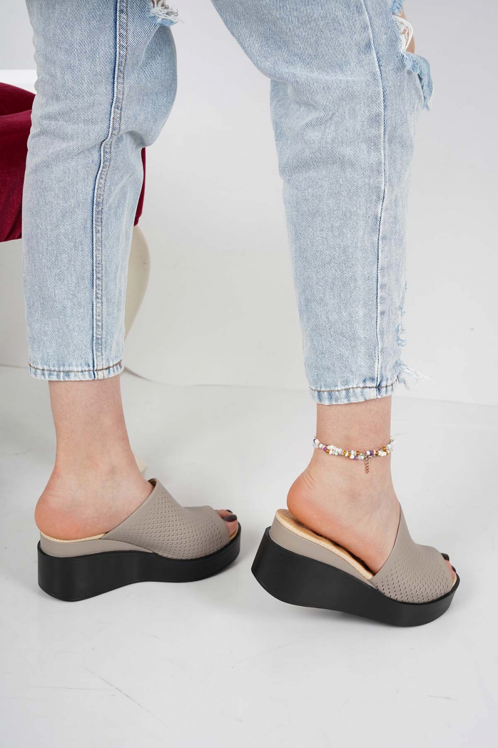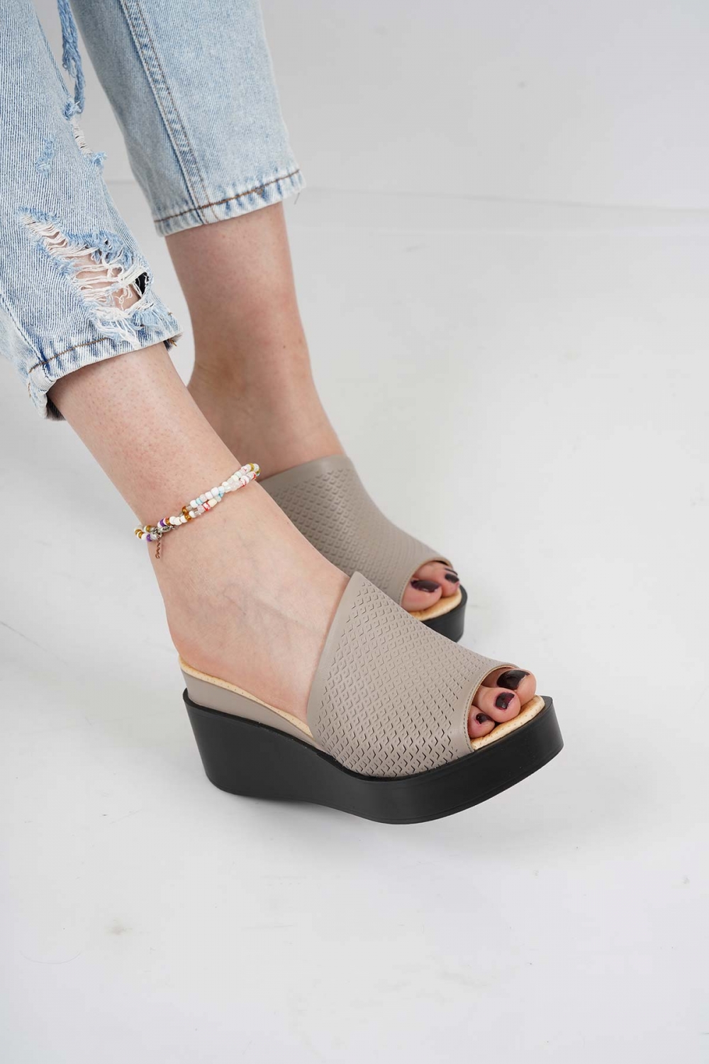 Hakiki Deri Vizon Kadın Dolgu Topuklu Terlik 231229610