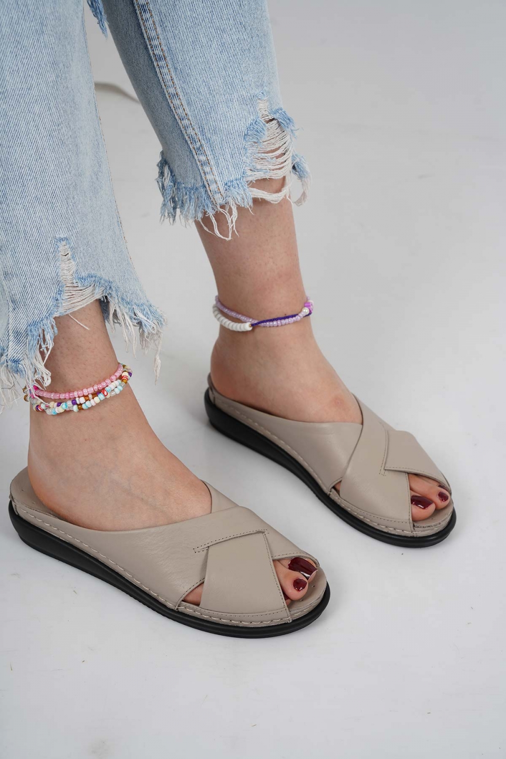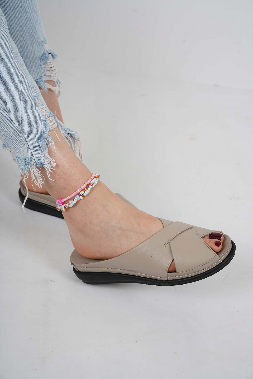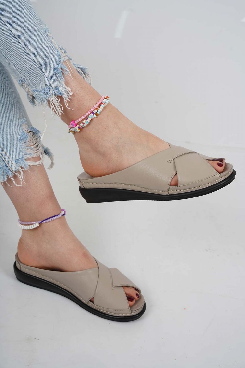Hakiki Deri Pudra Kadın Dolgu Topuklu Terlik 261114602
