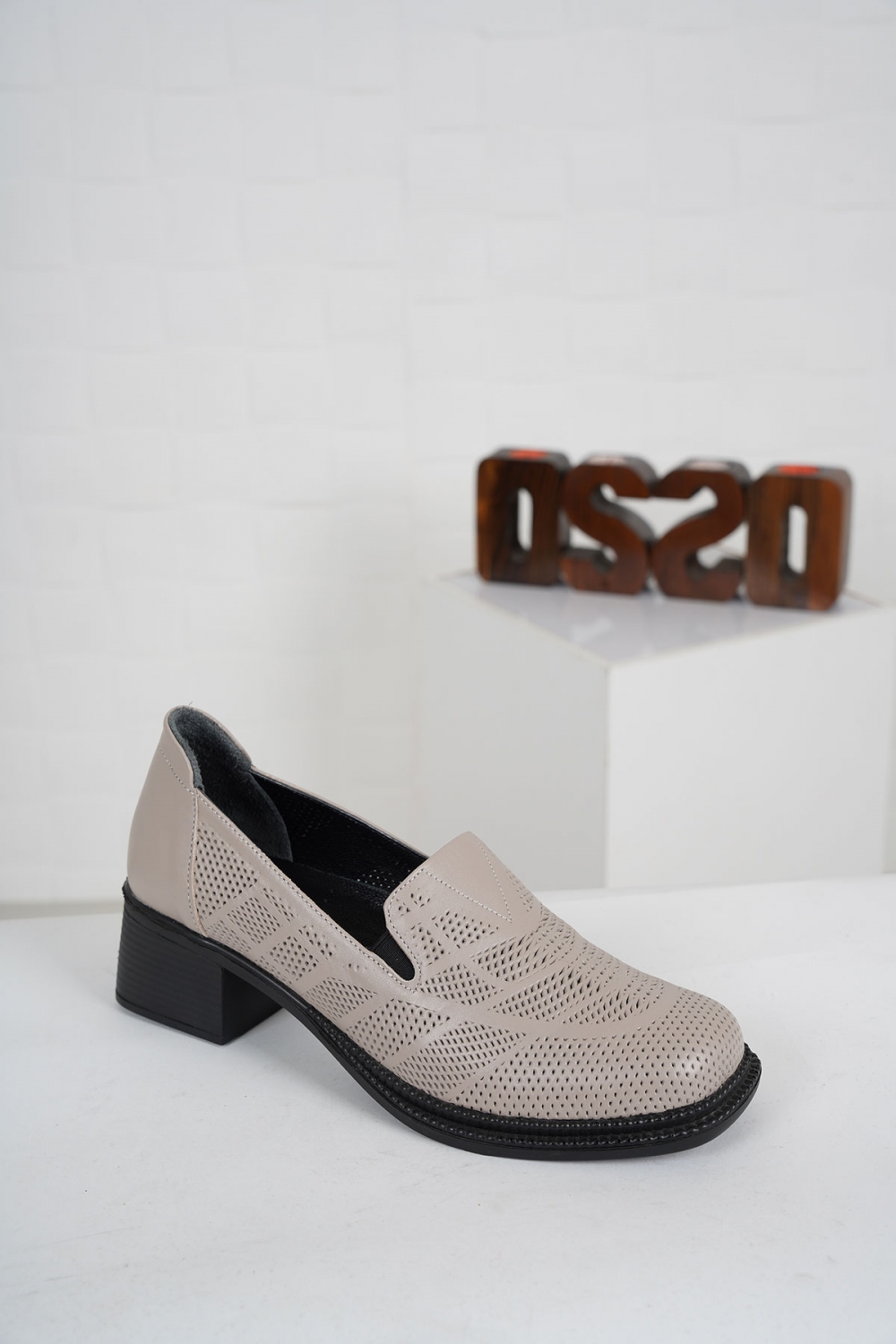 Hakiki Deri Bej Kadın Dolgu Topuklu Ayakkabı 261229102