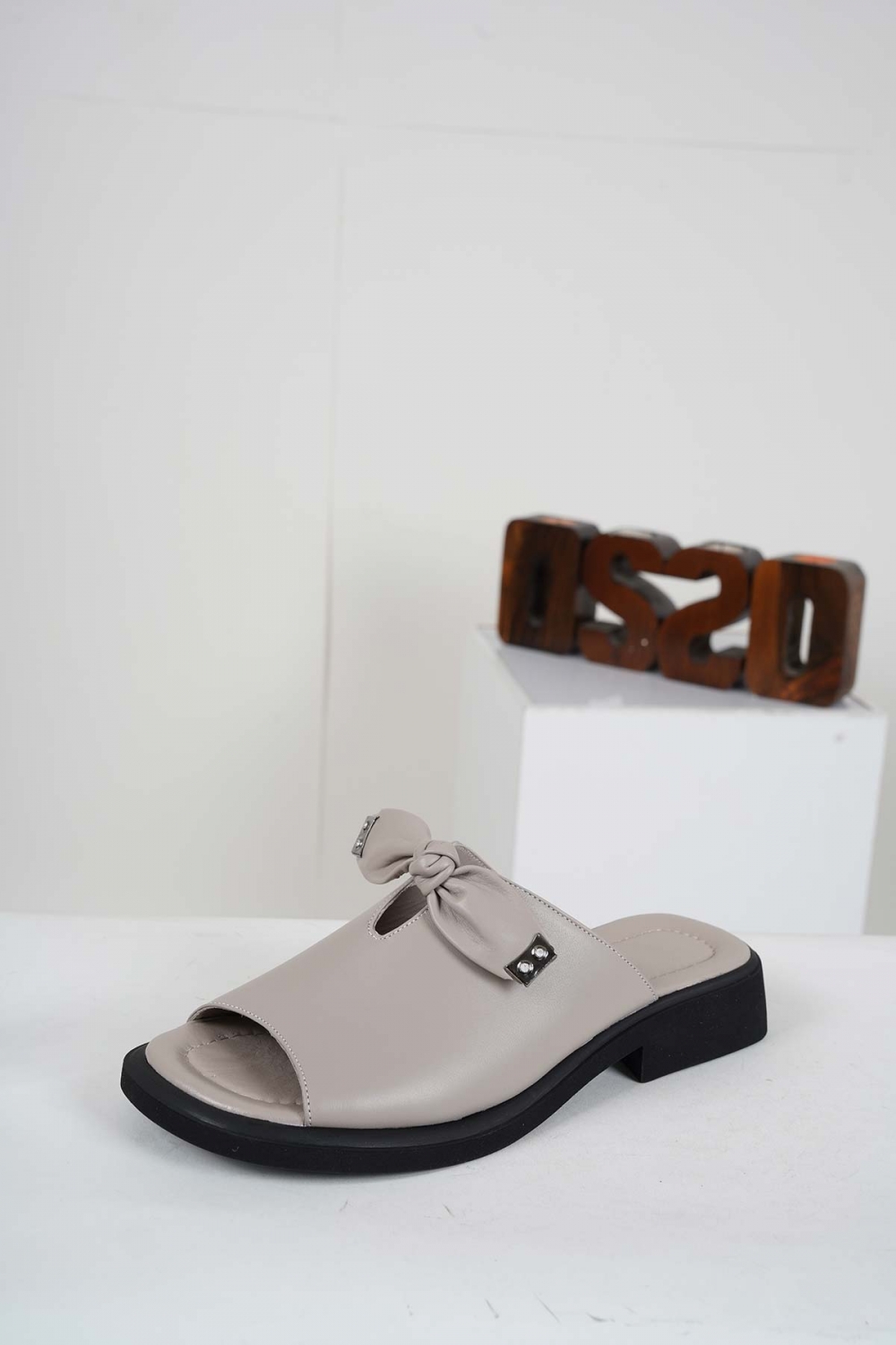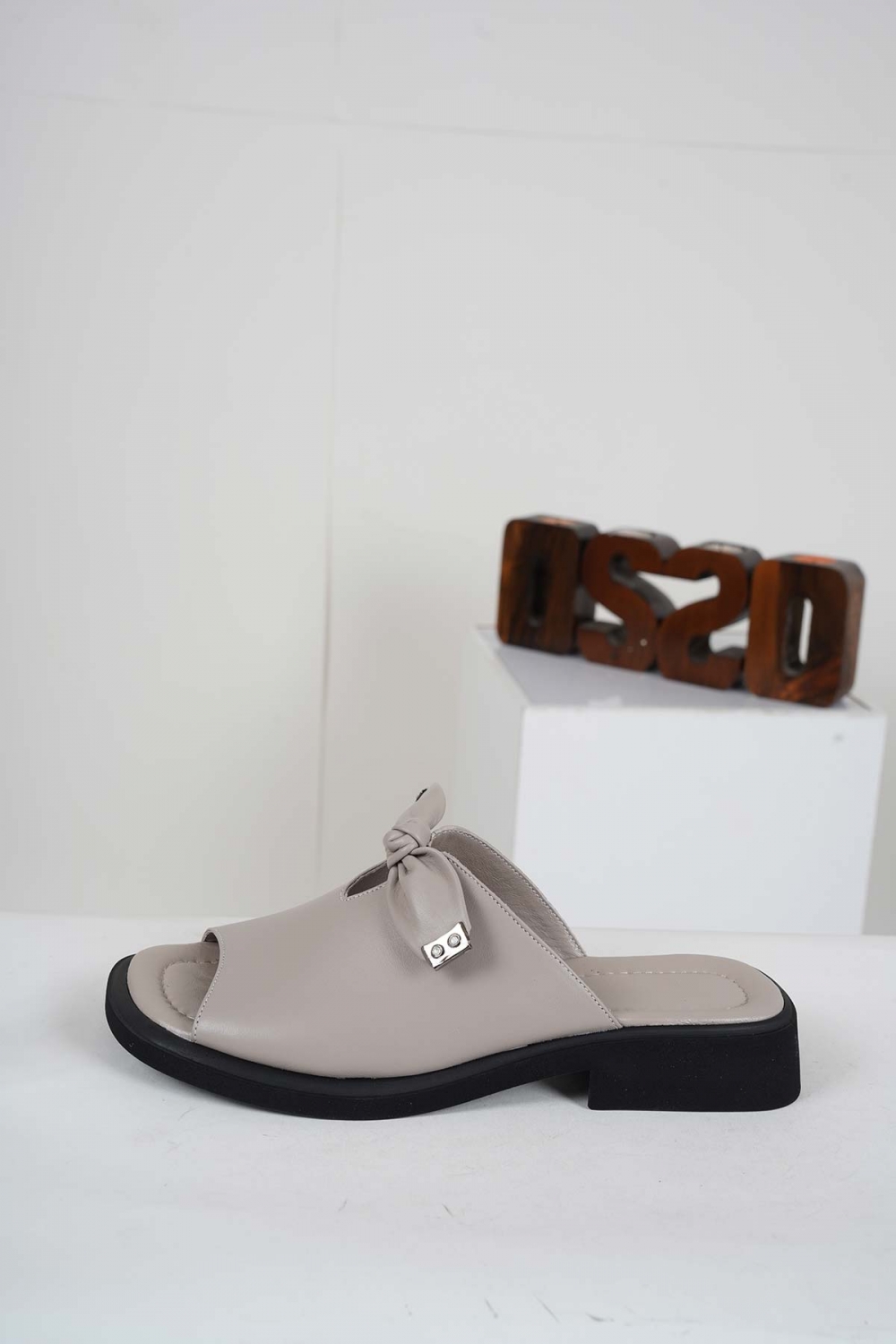 Hakiki Deri Gümüş Kadın Topuklu Terlik 241229614