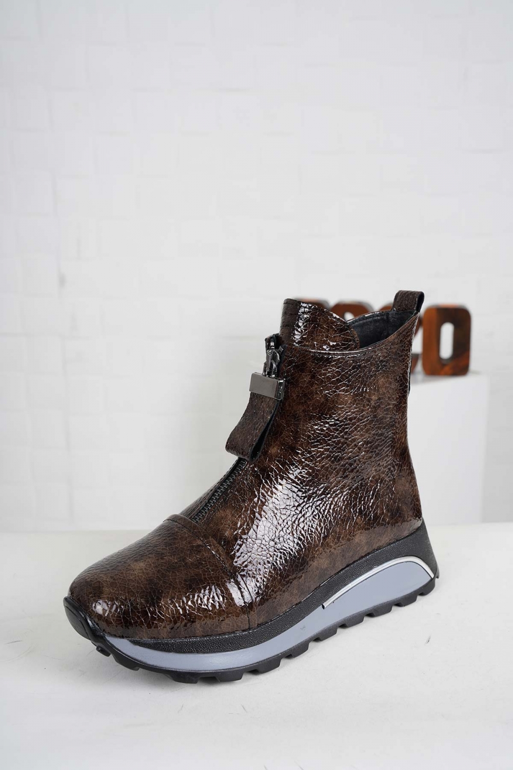 Hakiki Deri Siyah Kırık Rugan Kadın Casual Bot 242176205