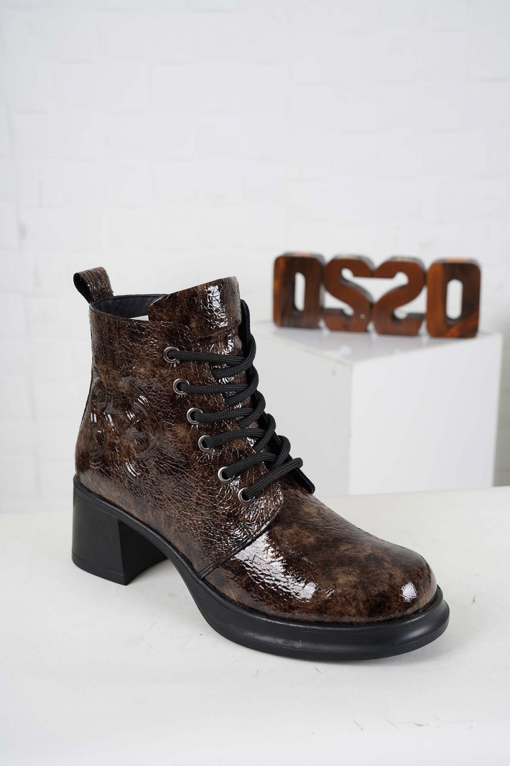 Hakiki Deri Siyah Baskılı Kadın Casual Bot 252136213