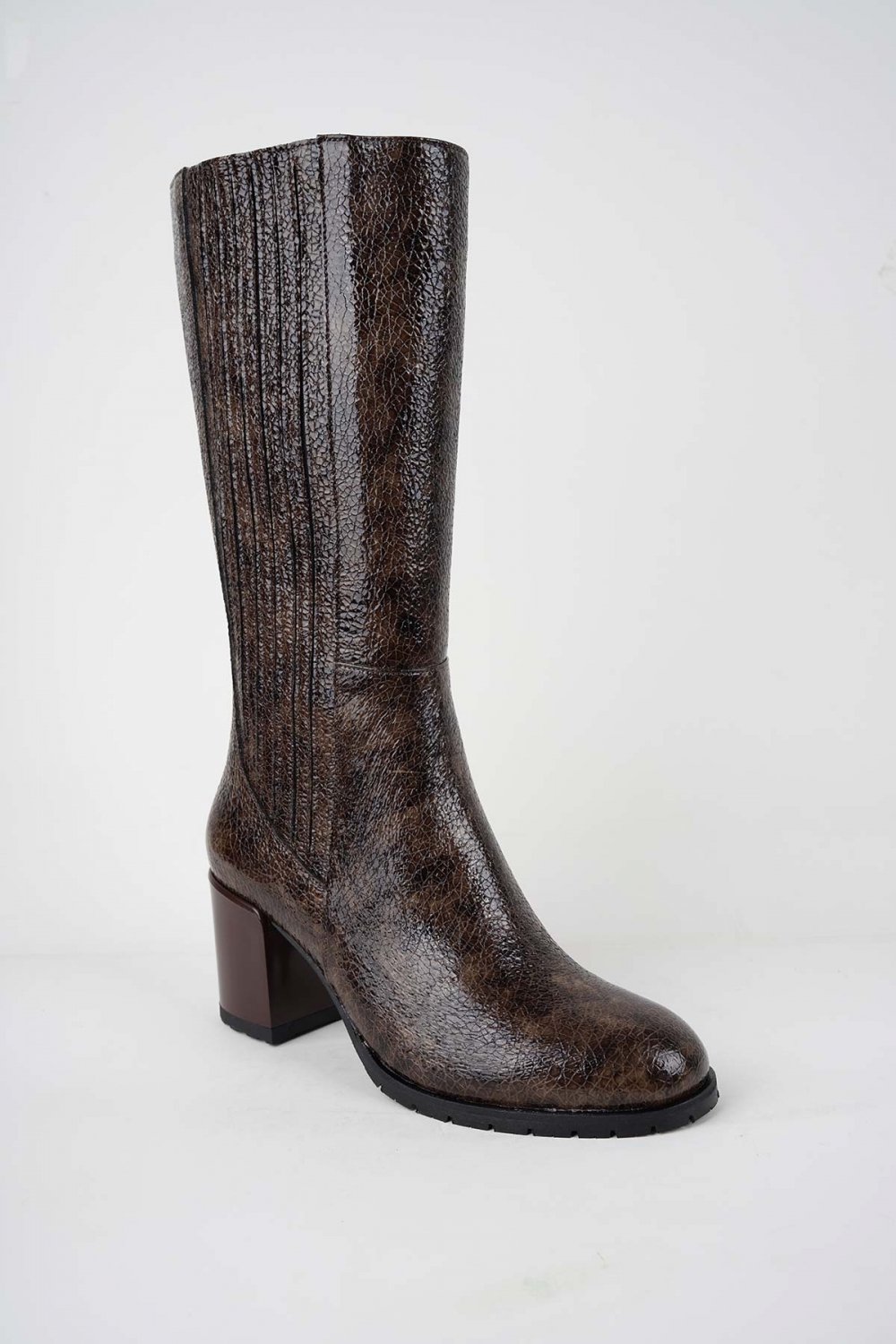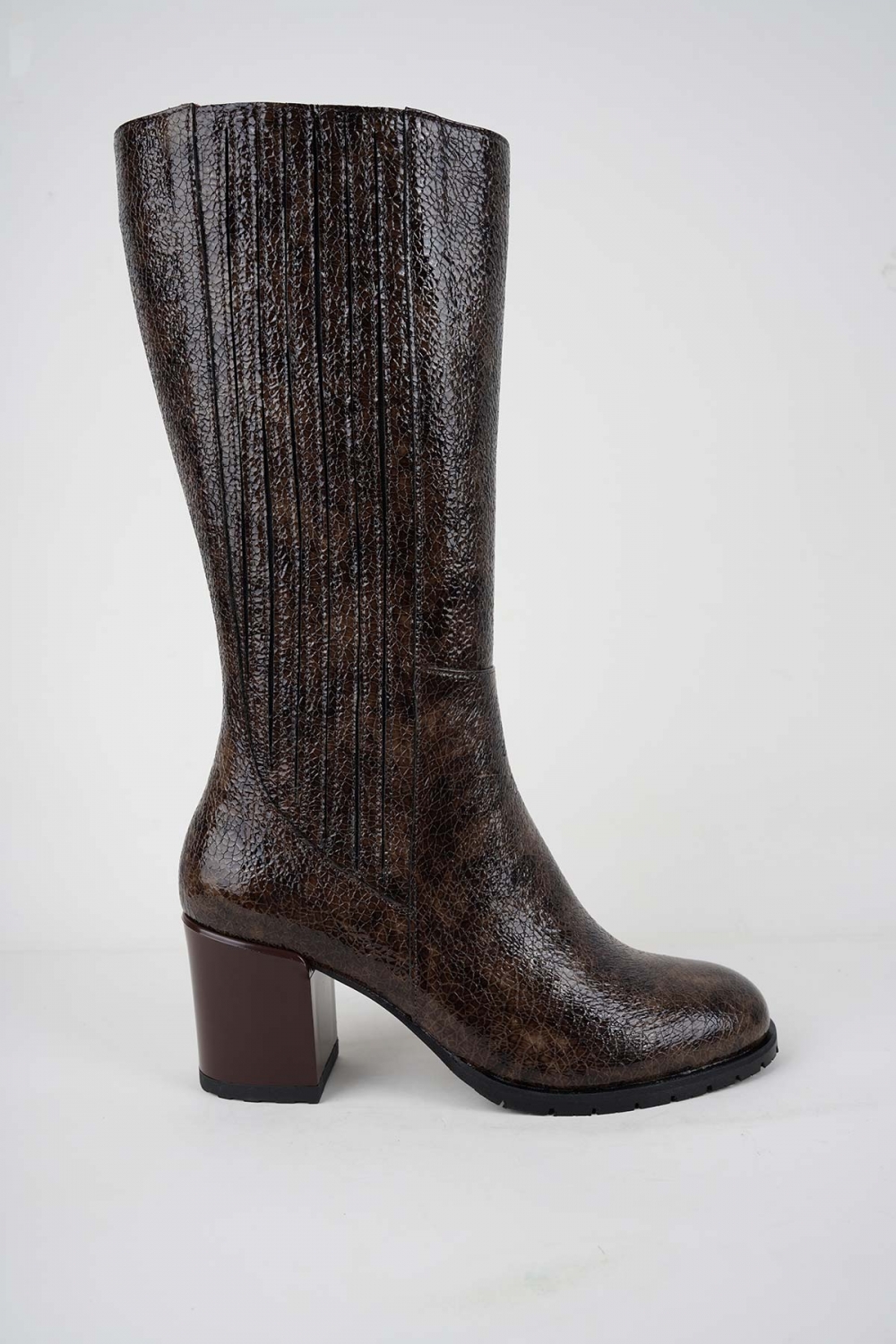 Hakiki Deri Vizon Kırık Rugan Kadın Topuklu Çizme 242127300