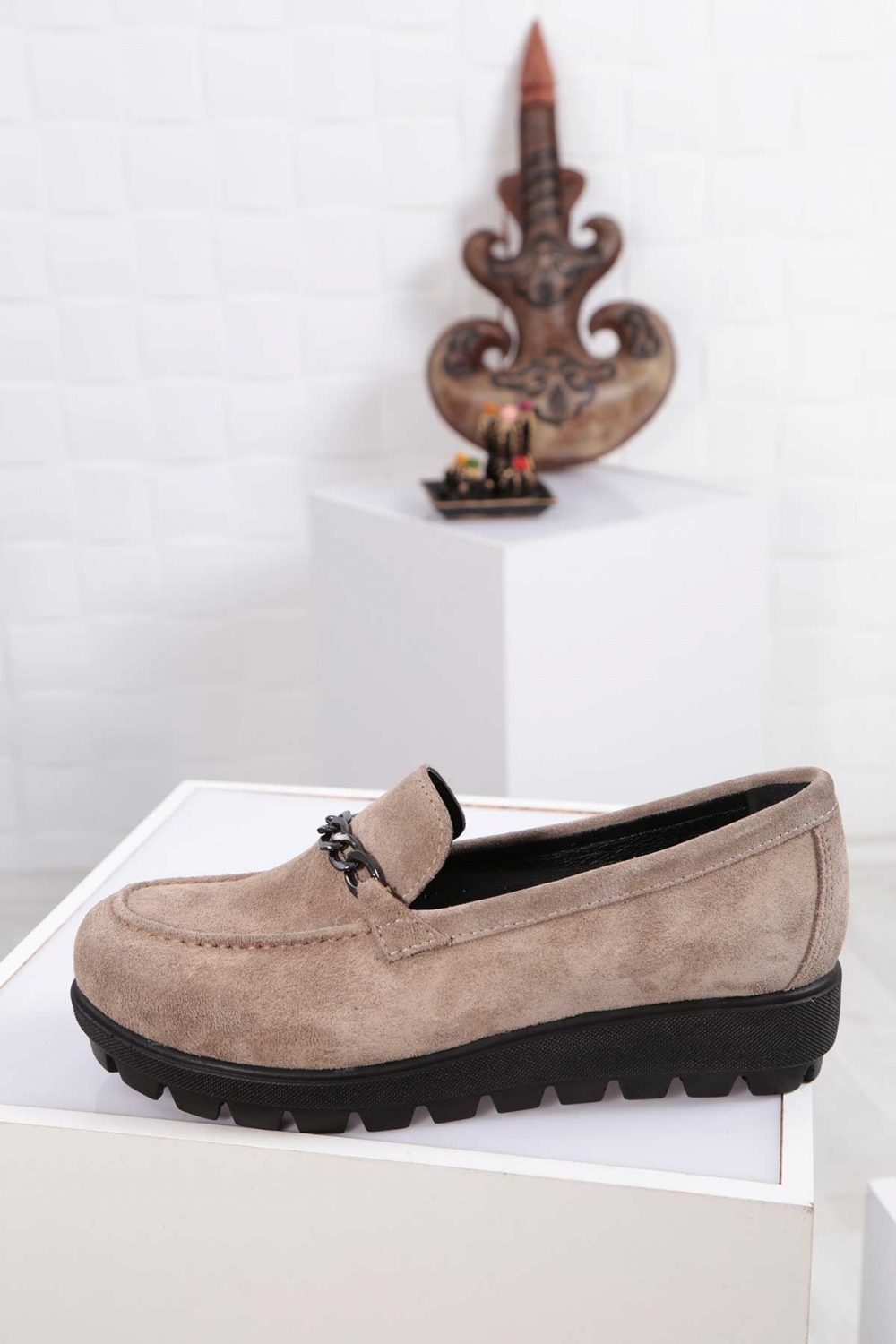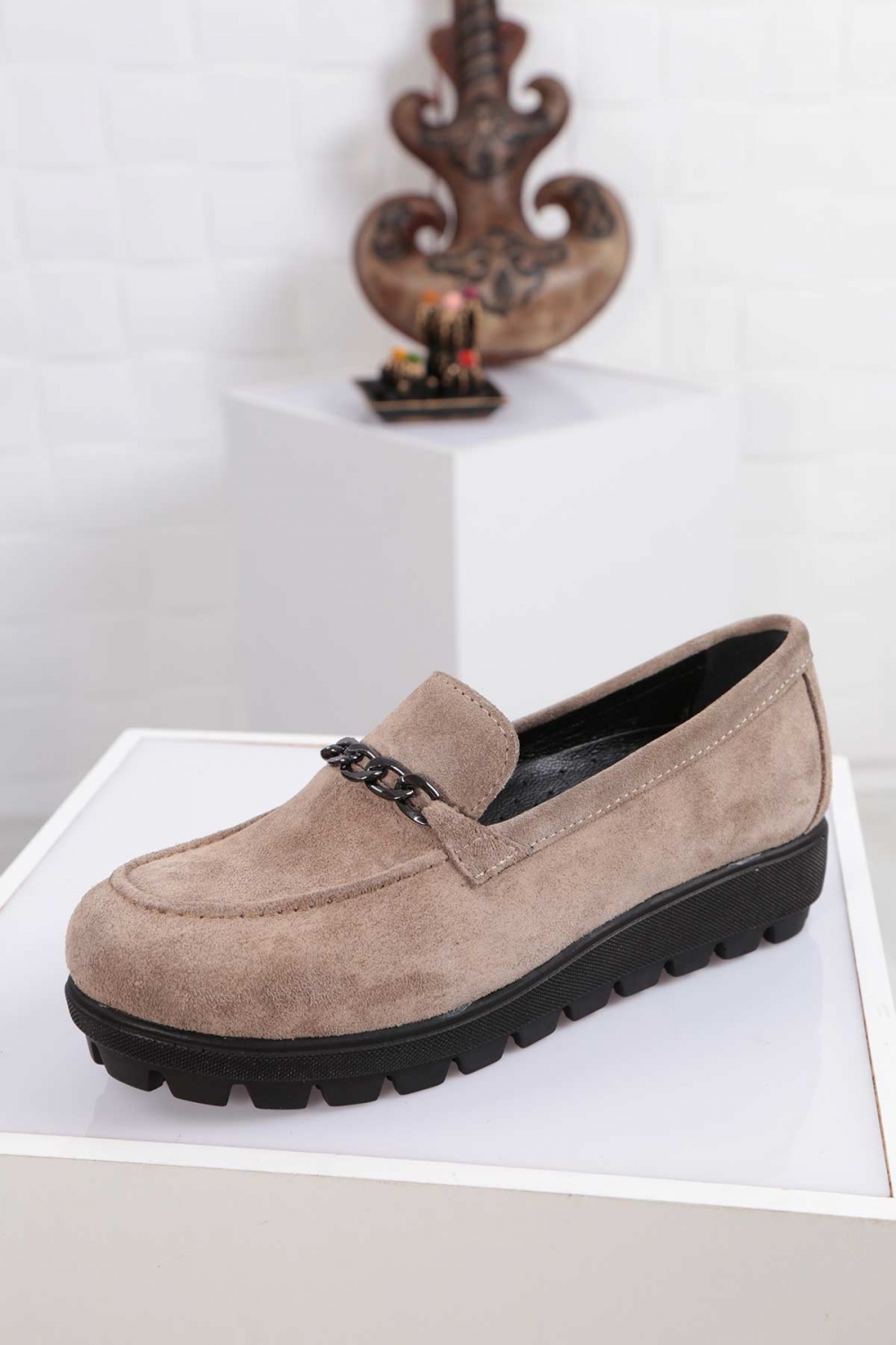 Hakiki Deri Vizon Süet Kadın Casual Ayakkabı 261108104