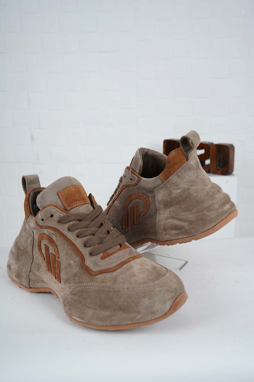 Hakiki Deri Vizon Süet-Taba Süet Kadın Sneaker Ayakkabı 241114101