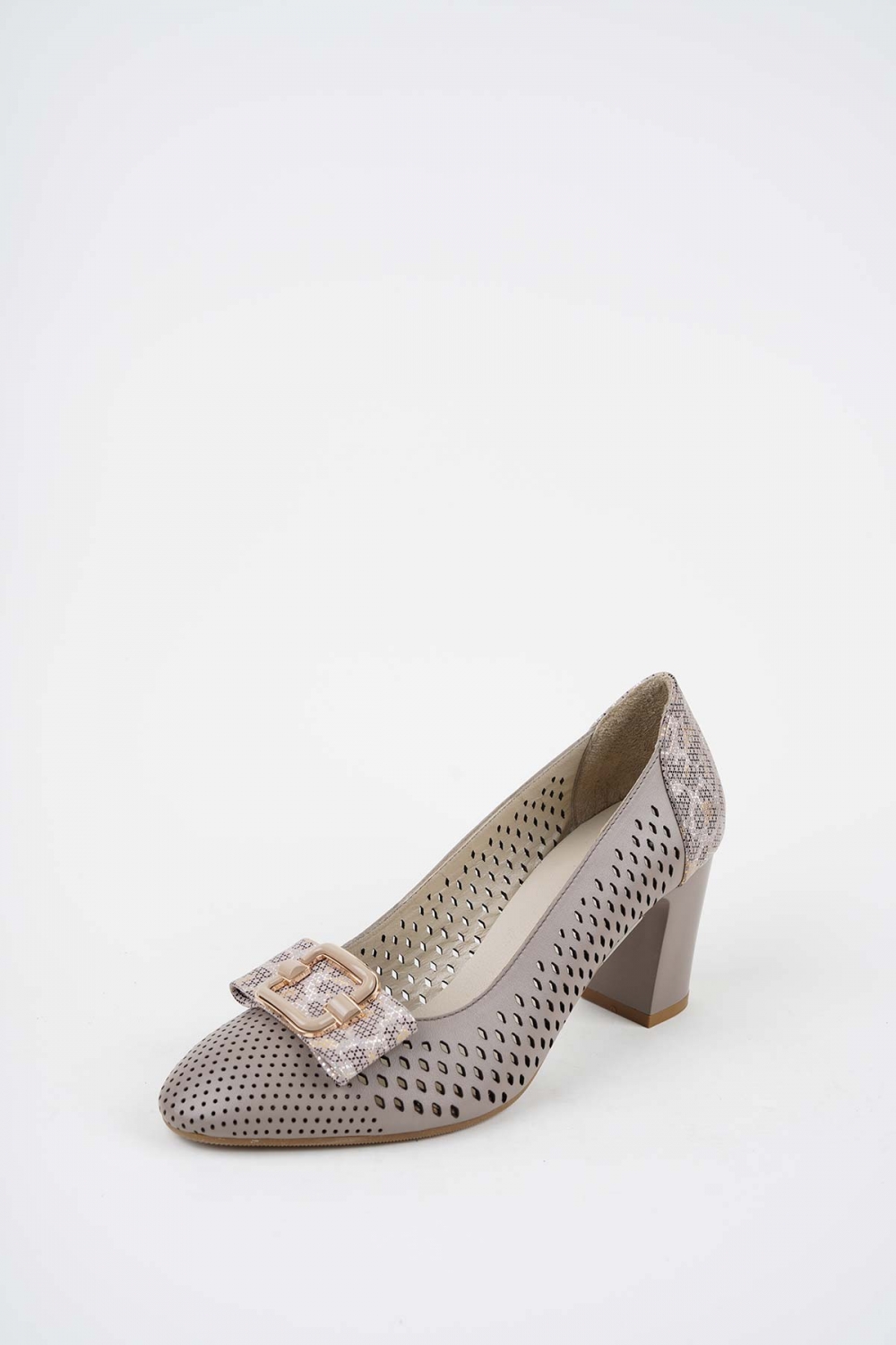 Hakiki Deri Bej-Bej Baskılı Kadın Topuklu Ayakkabı 261105101