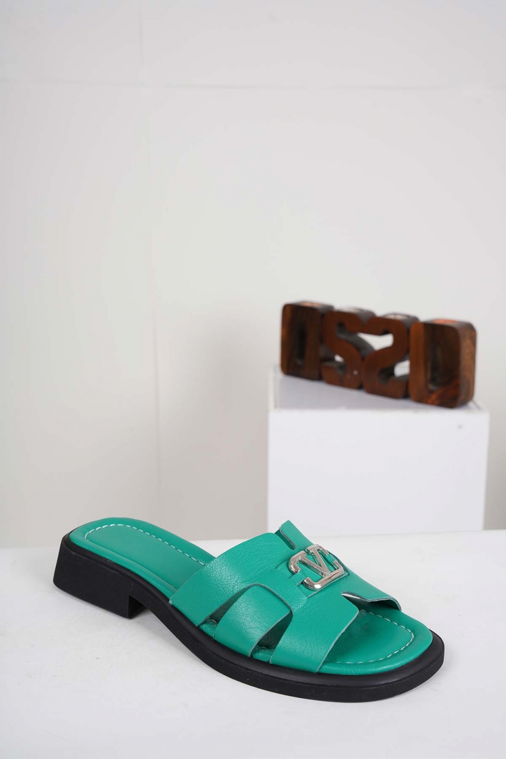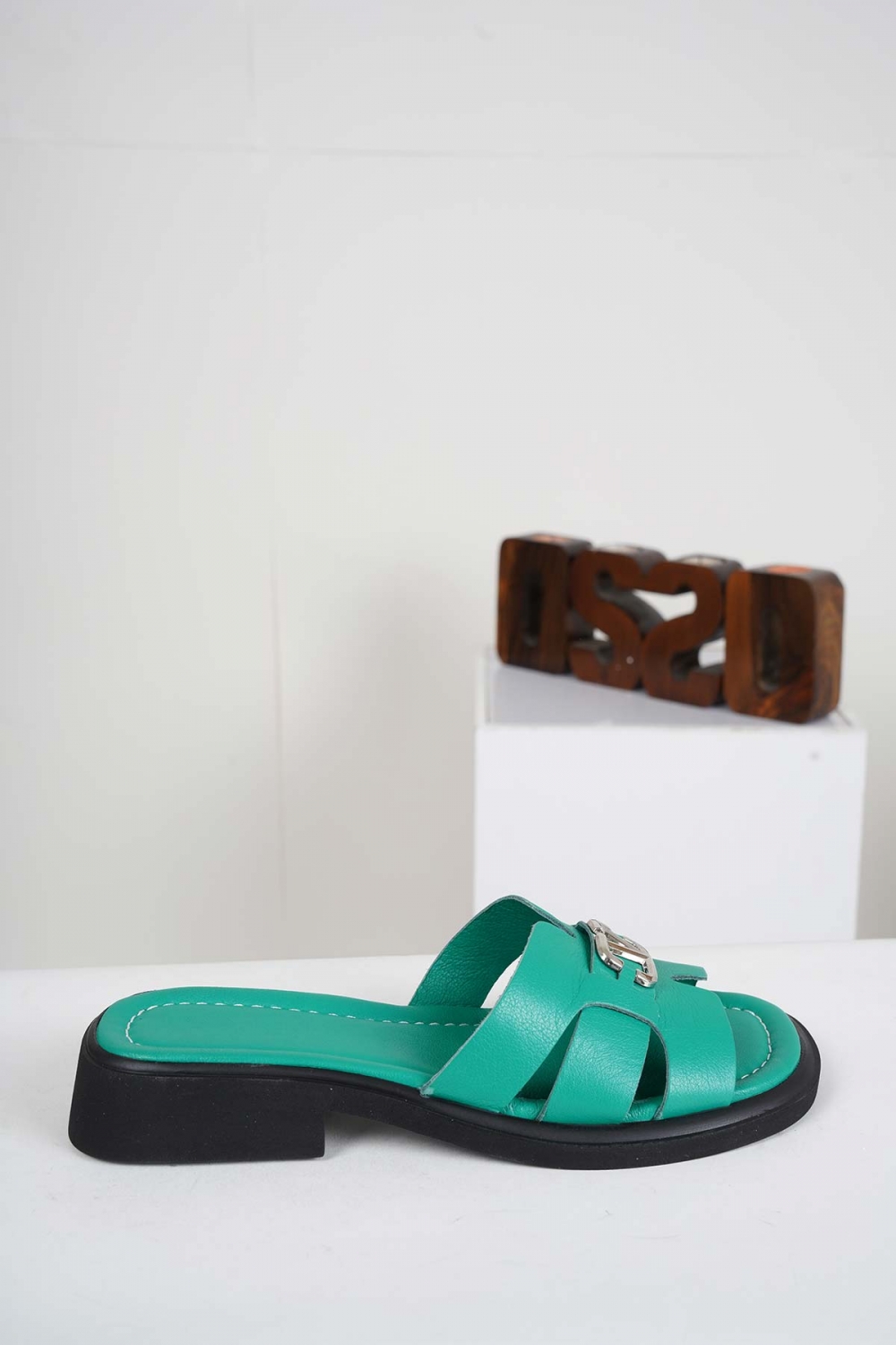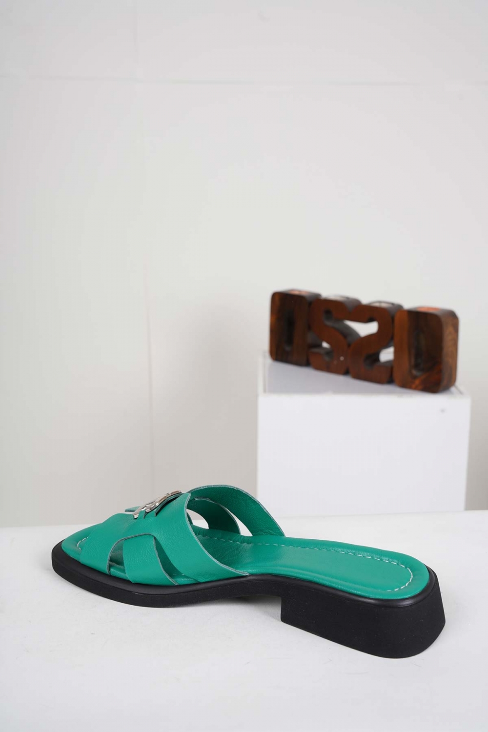 Hakiki Deri Yeşil Kadın Alçak Topuklu Terlik 241225607