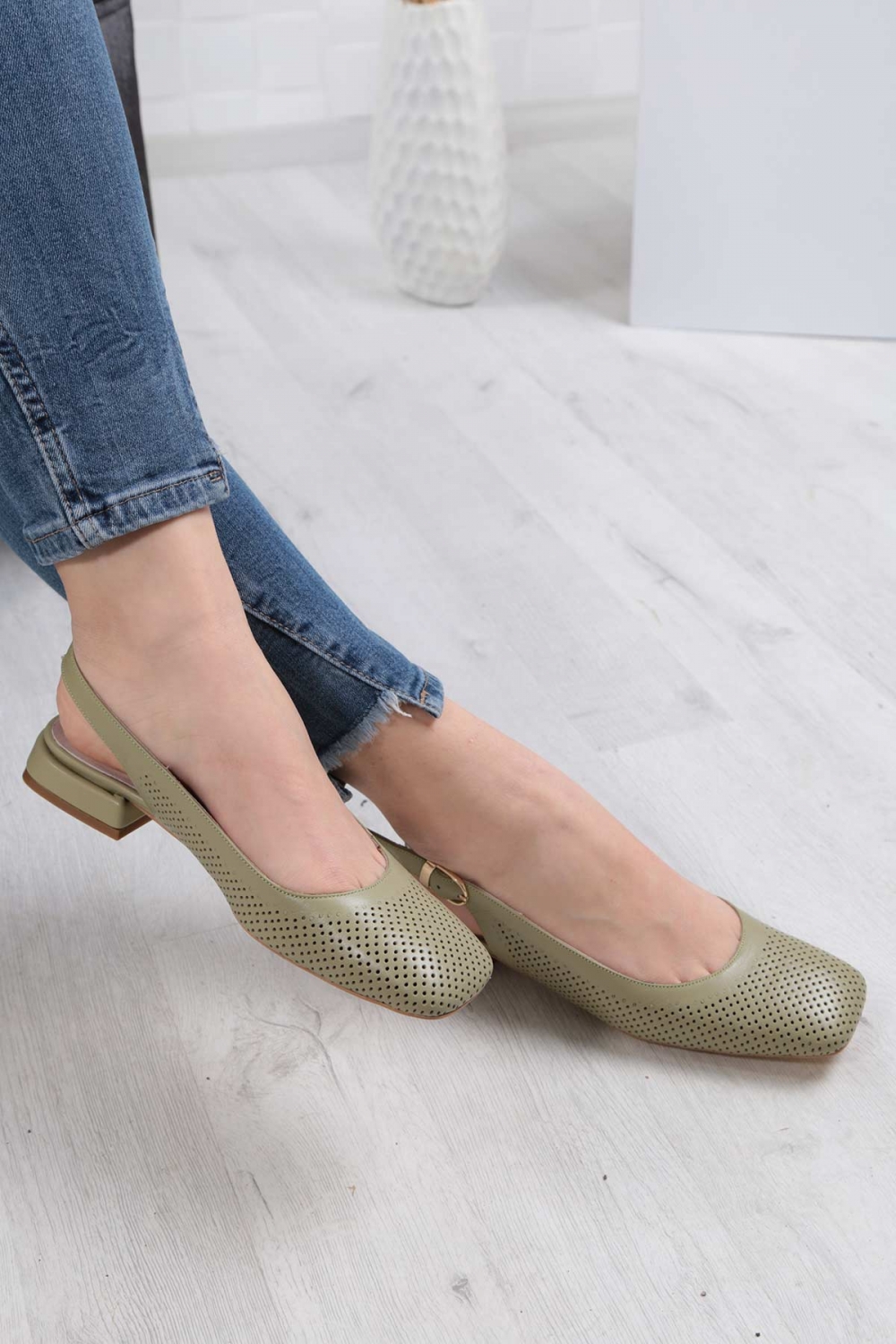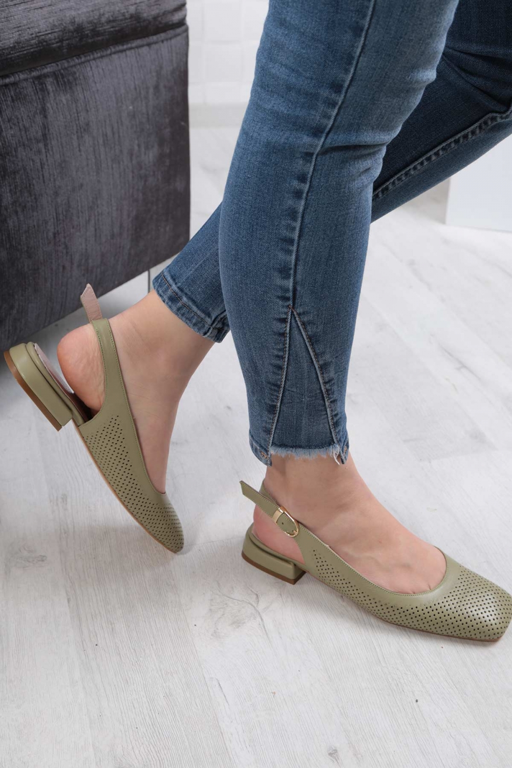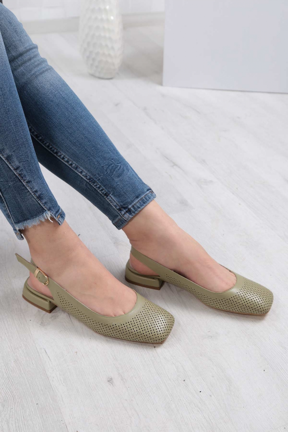 Hakiki Deri Yeşil Kadın Burun Kapalı Sandalet 211127530