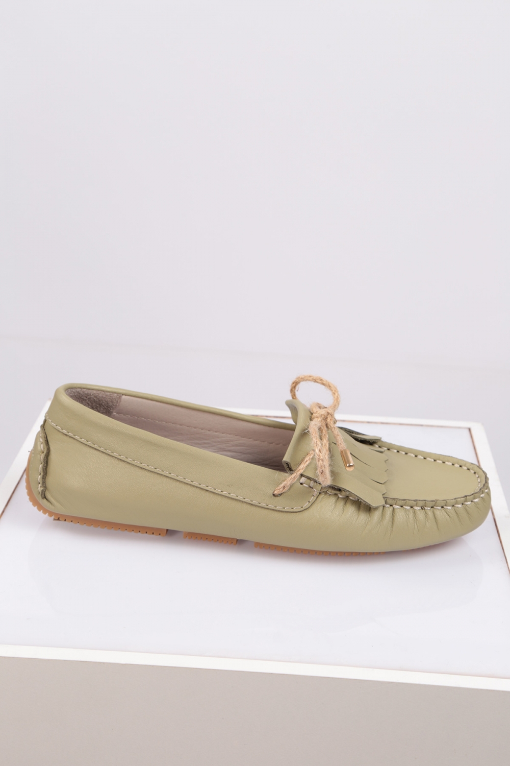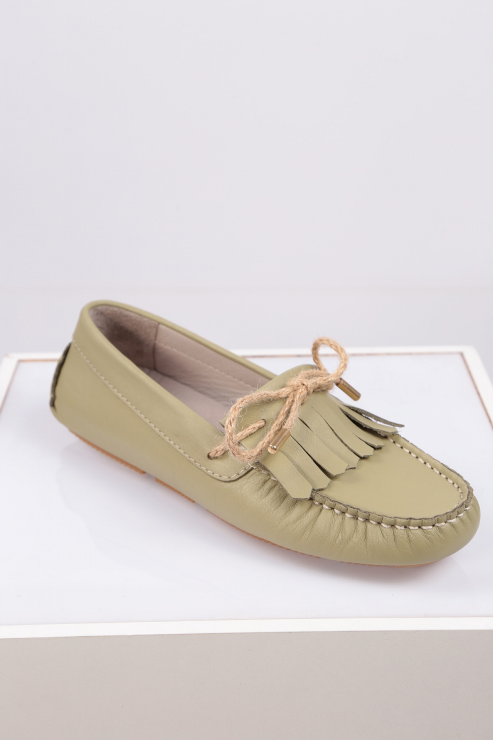 Hakiki Deri Yeşil Kadın Makosen Ayakkabı 221209109