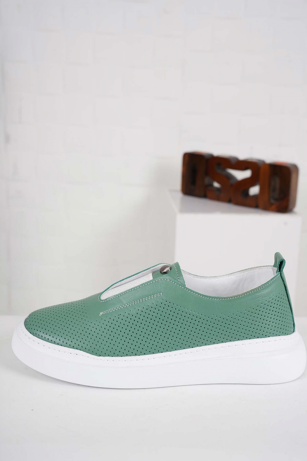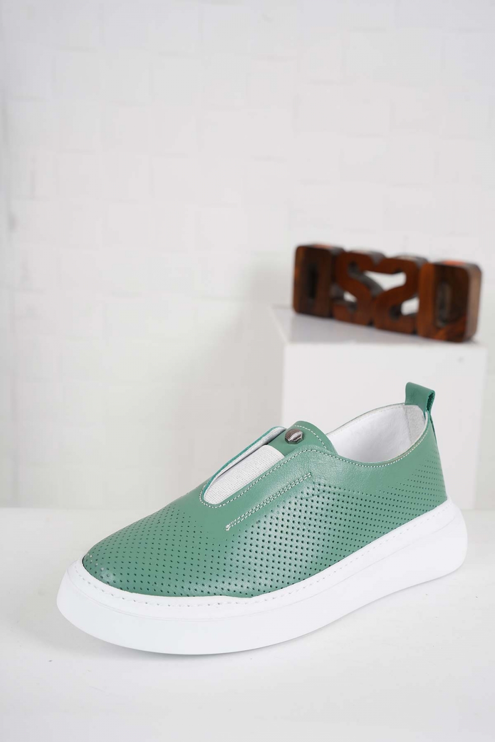 Hakiki Deri Yeşil Kadın Sneaker Ayakkabı 241218104