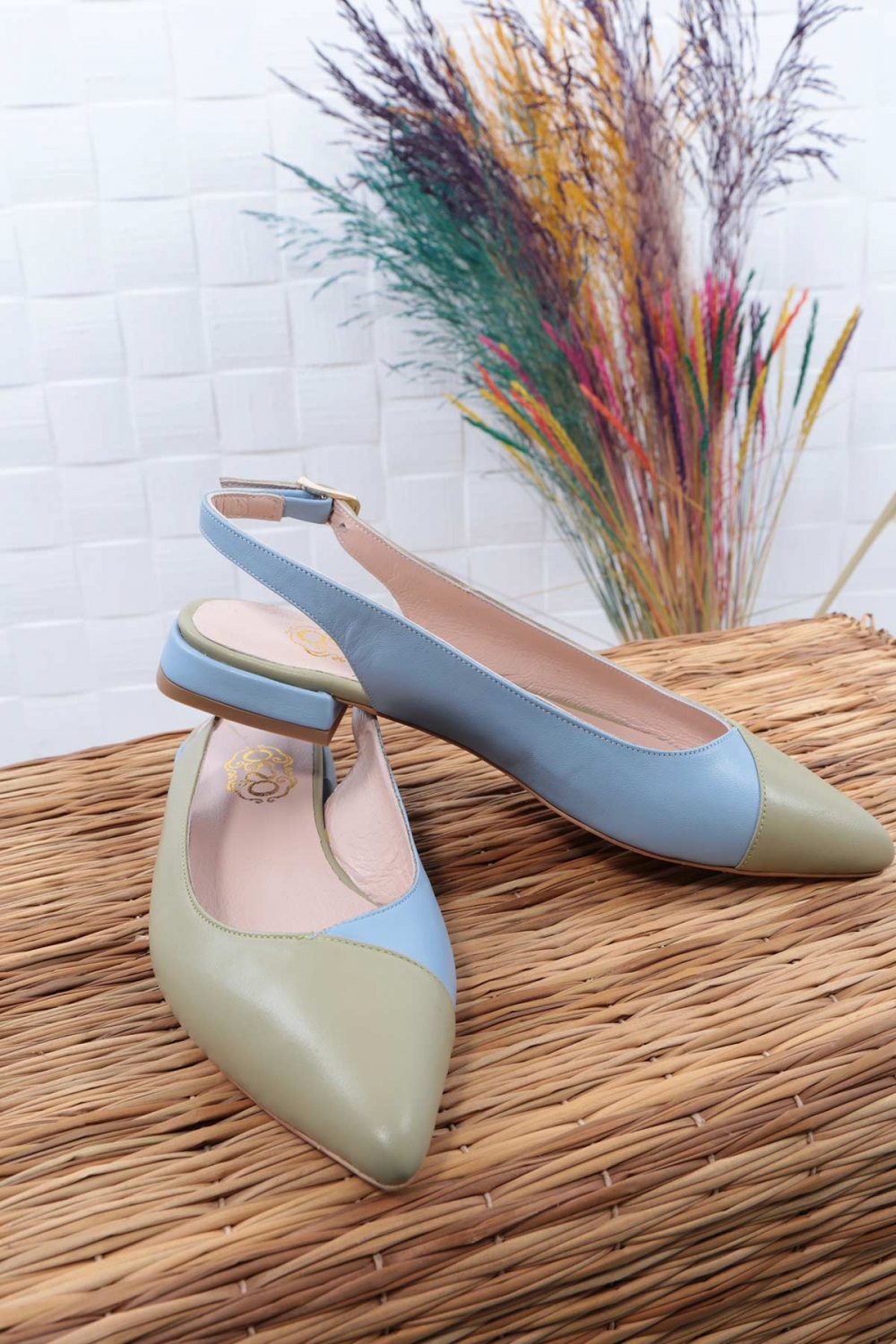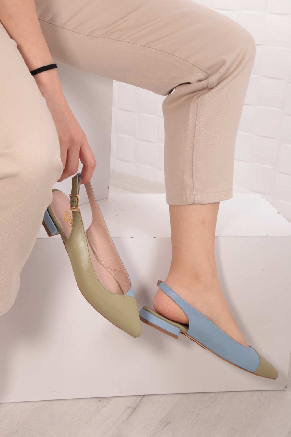 Hakiki Deri Yeşil-Mavi Kadın Burun Kapalı Sandalet 211127508