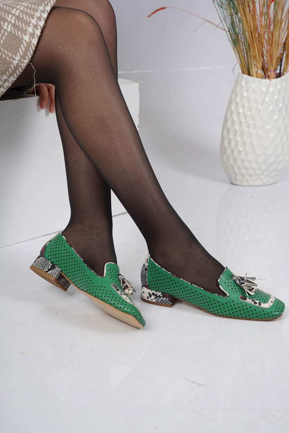 Hakiki Deri Yeşil-Piton Kadın Casual Ayakkabı 231127106