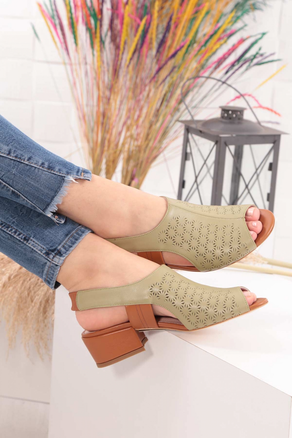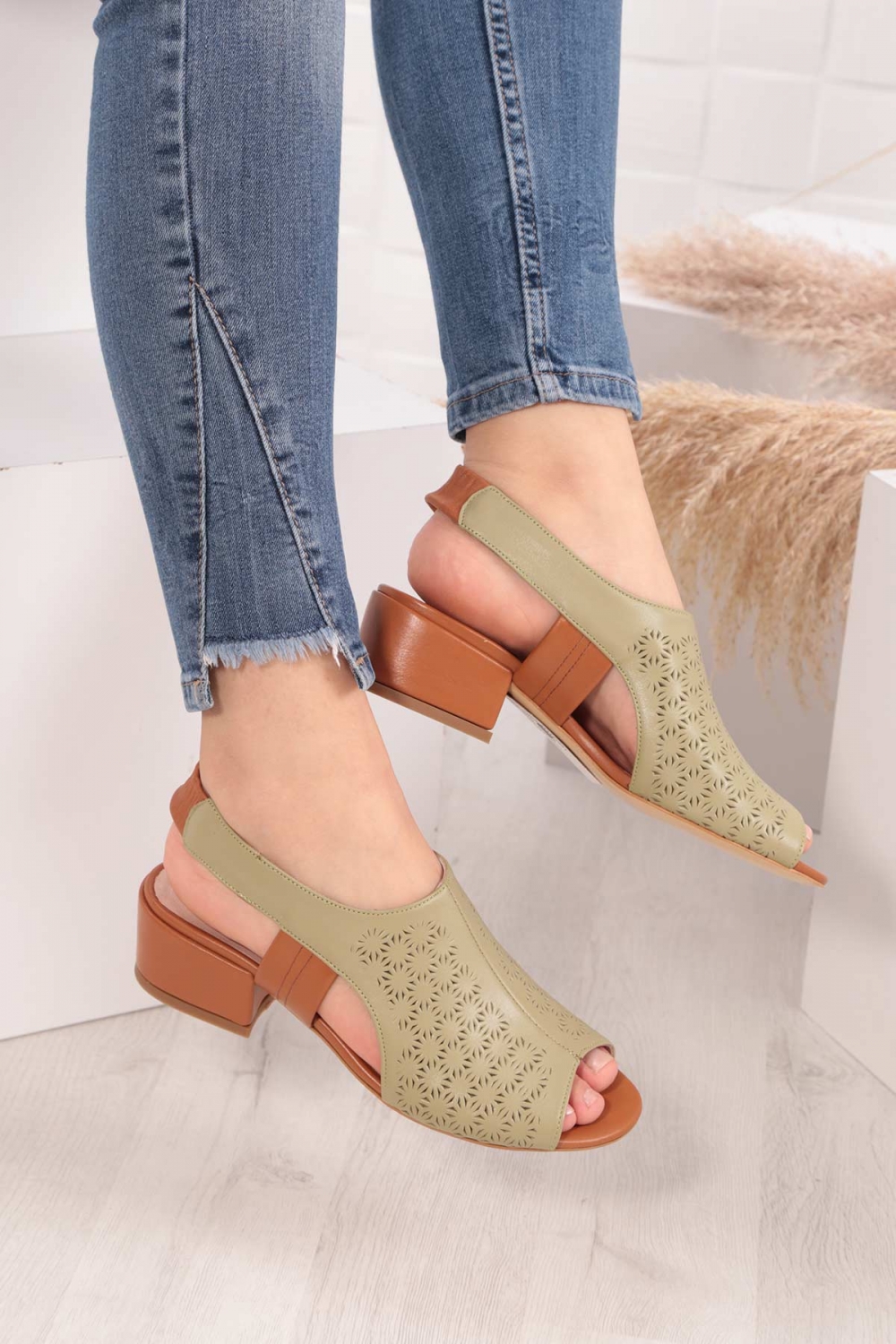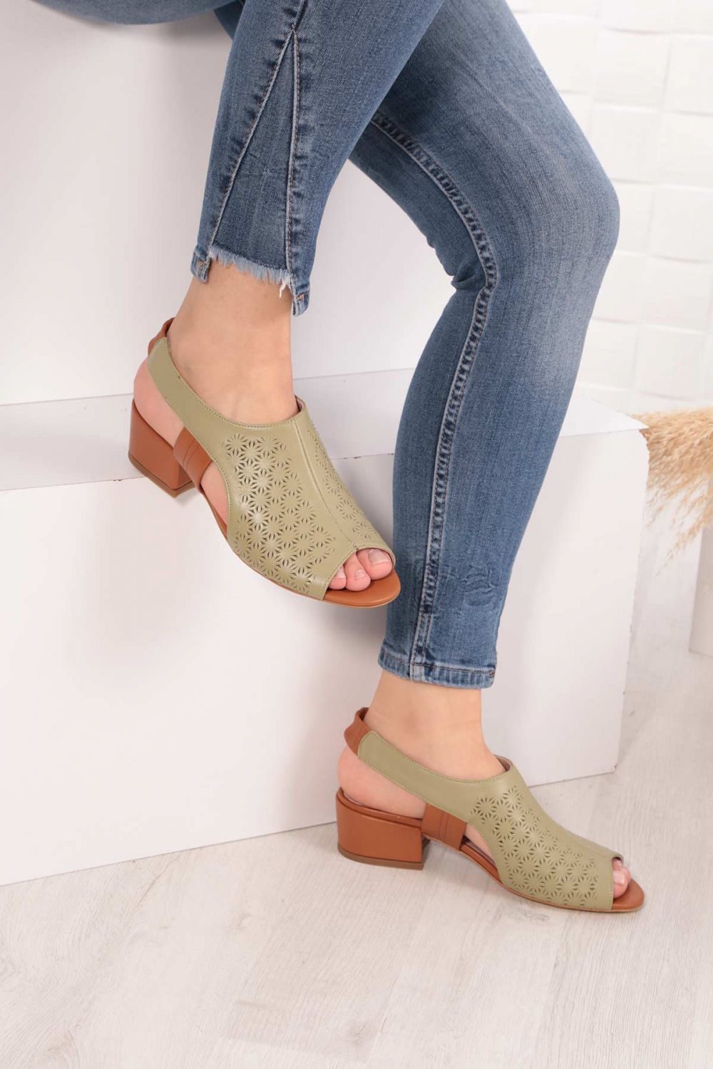 Hakiki Deri Yeşil-Taba Kadın Burun Kapalı Sandalet 211127521