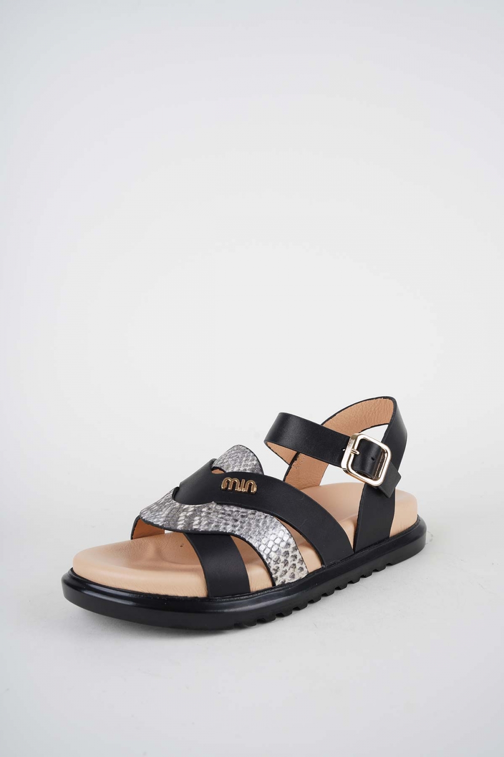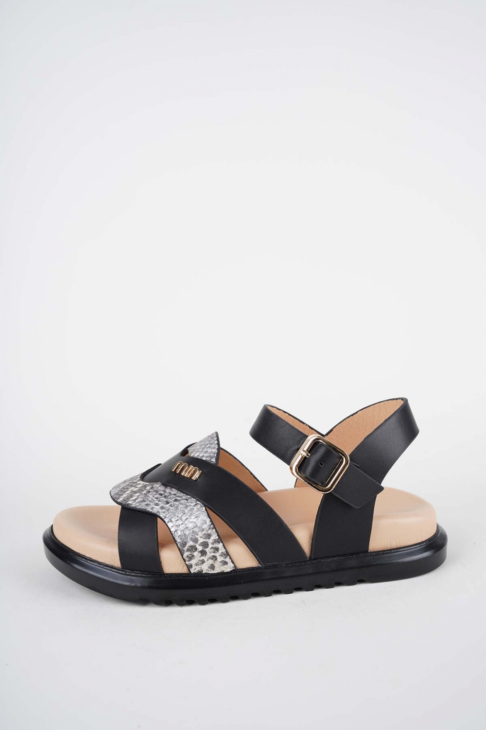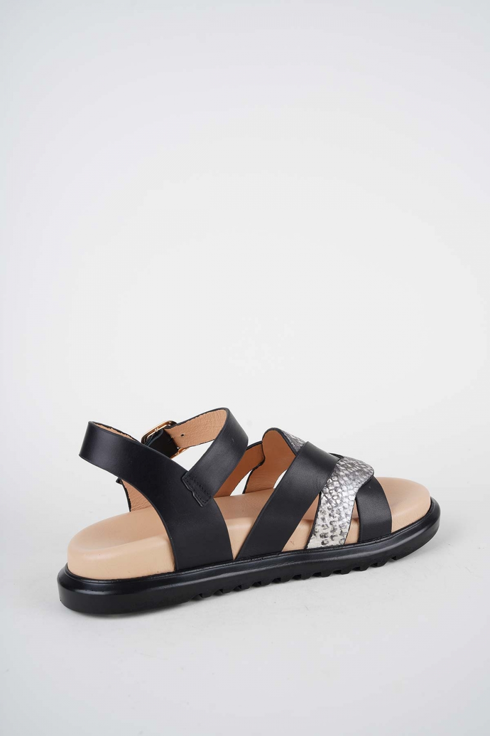 Hakiki Deri Yılan Baskı-Siyah Kadın Düz Sandalet 261162502
