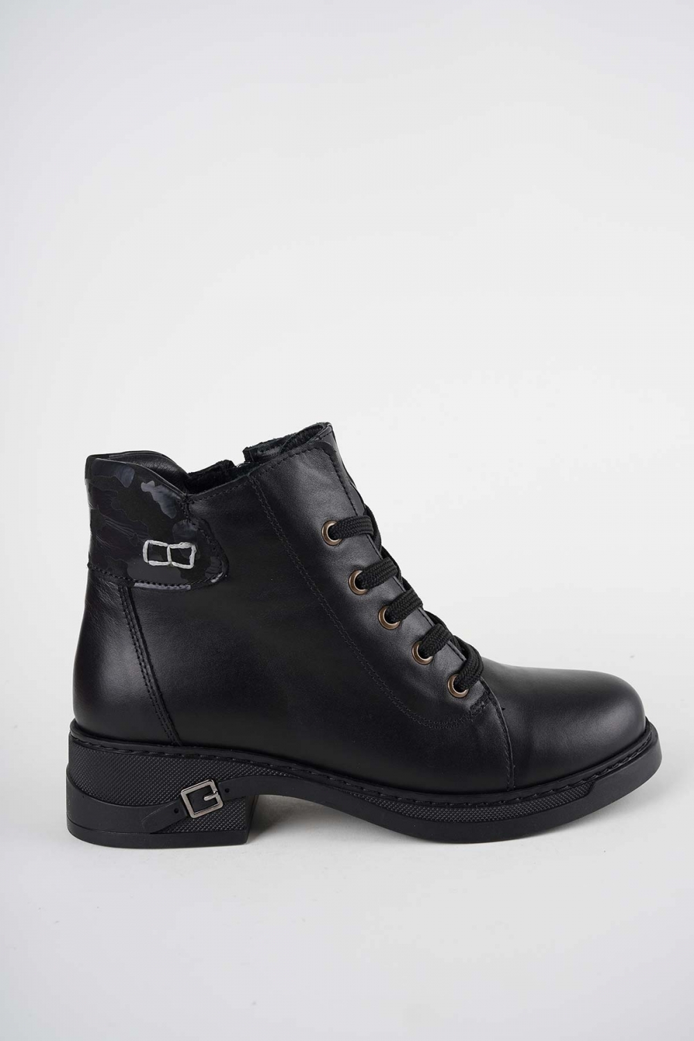 Hakiki Deri Siyah Baskılı Kadın Casual Bot 252136213