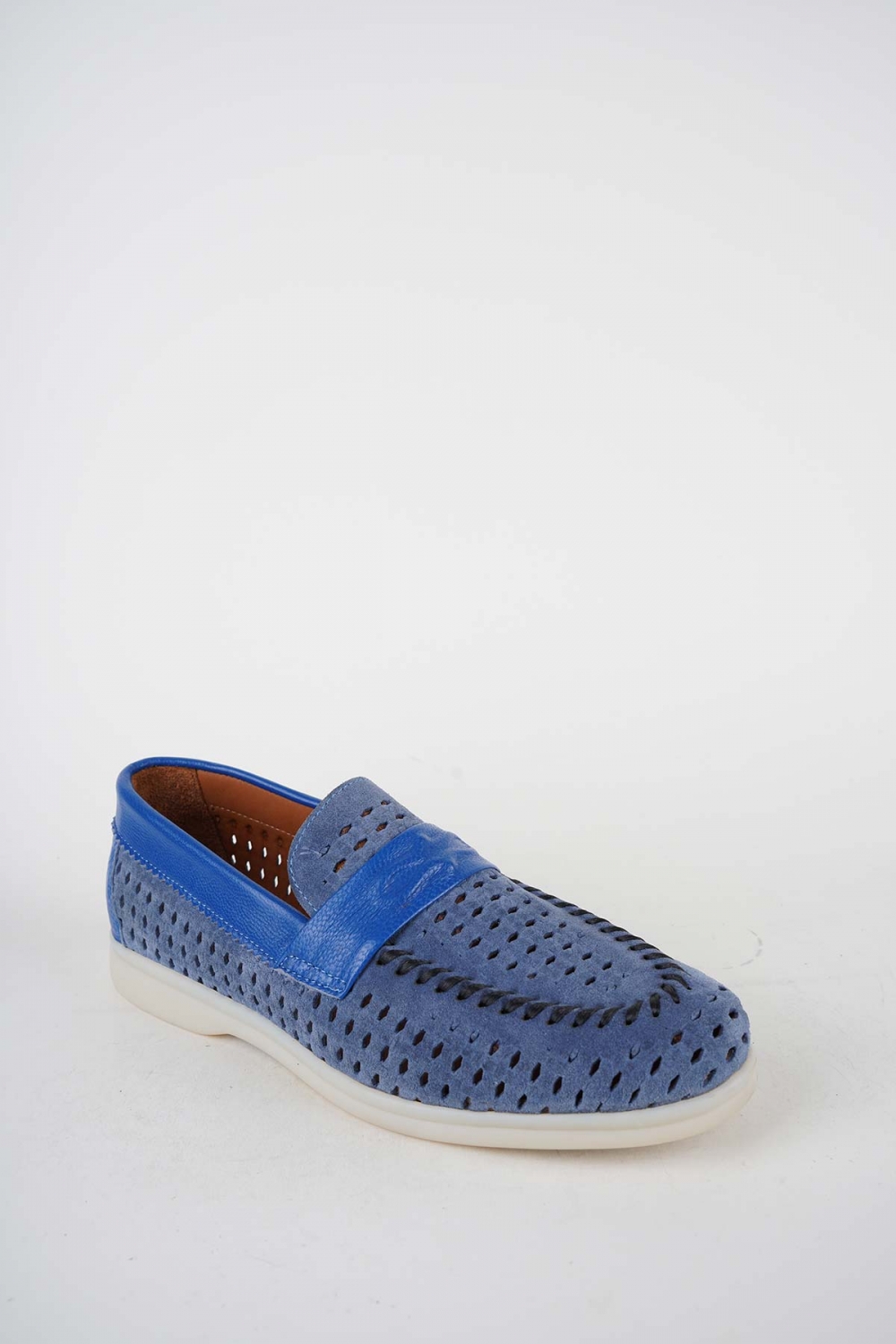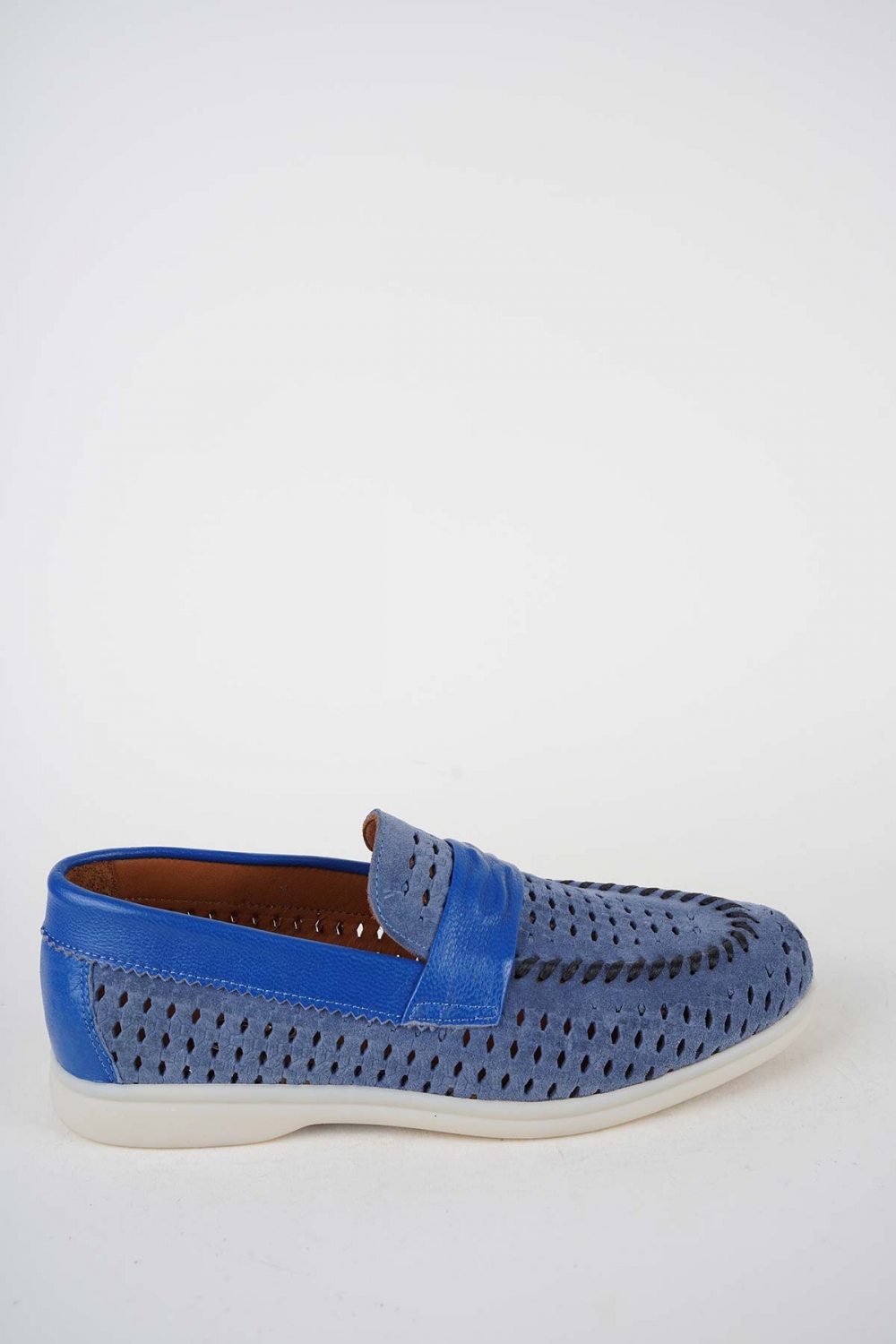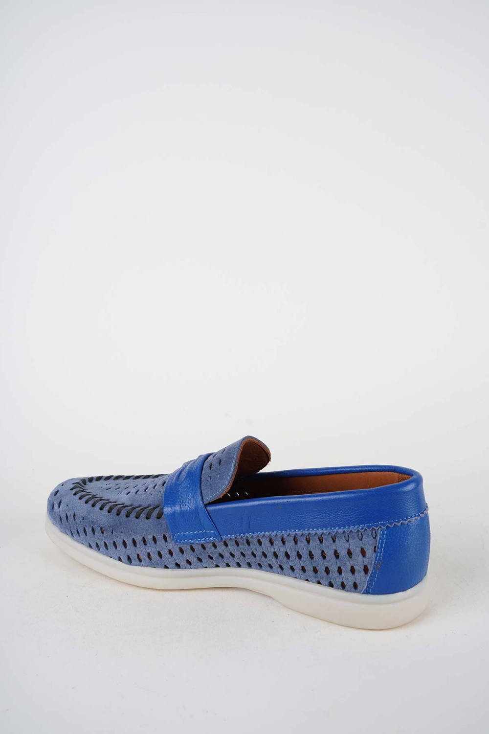 Hakiki Deri Kot Süet-Sax Mavi Kadın Makosen Ayakkabı 261507Z101