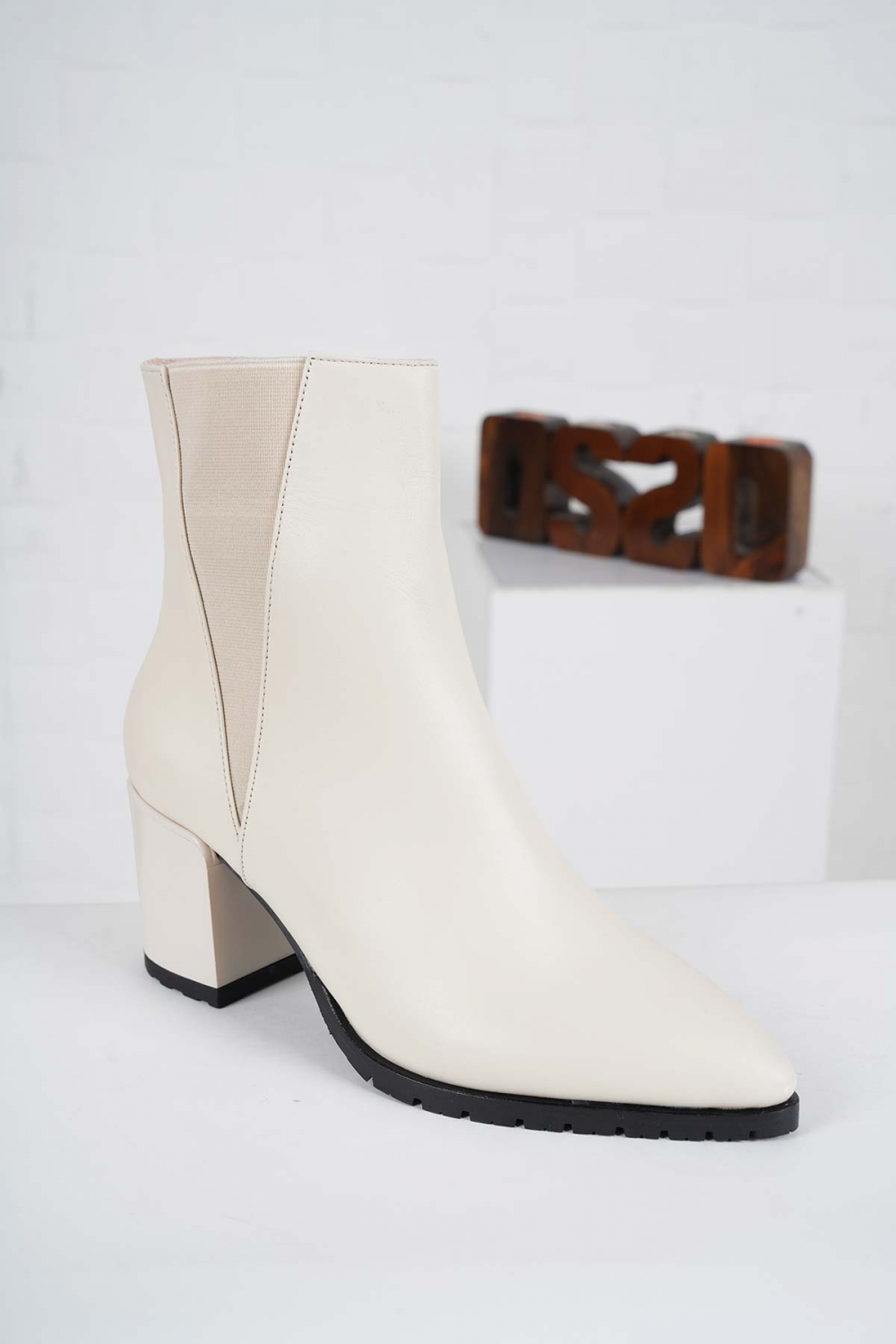 Hakiki Deri Bej Kadın Topuklu Bot 222127207