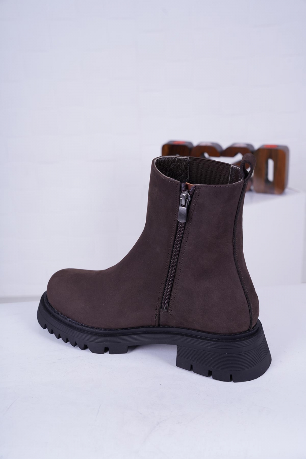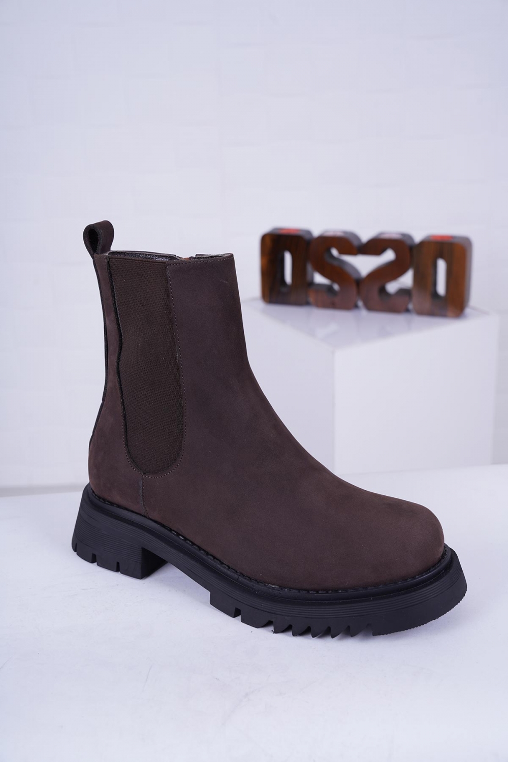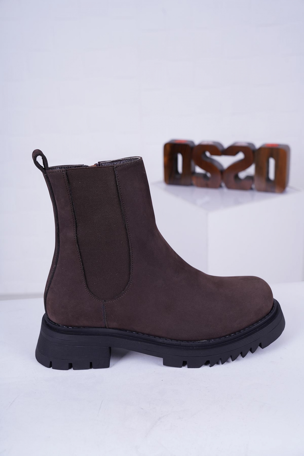 Hakiki Deri Kahve Nubuk Kadın Düz Bot 212127202