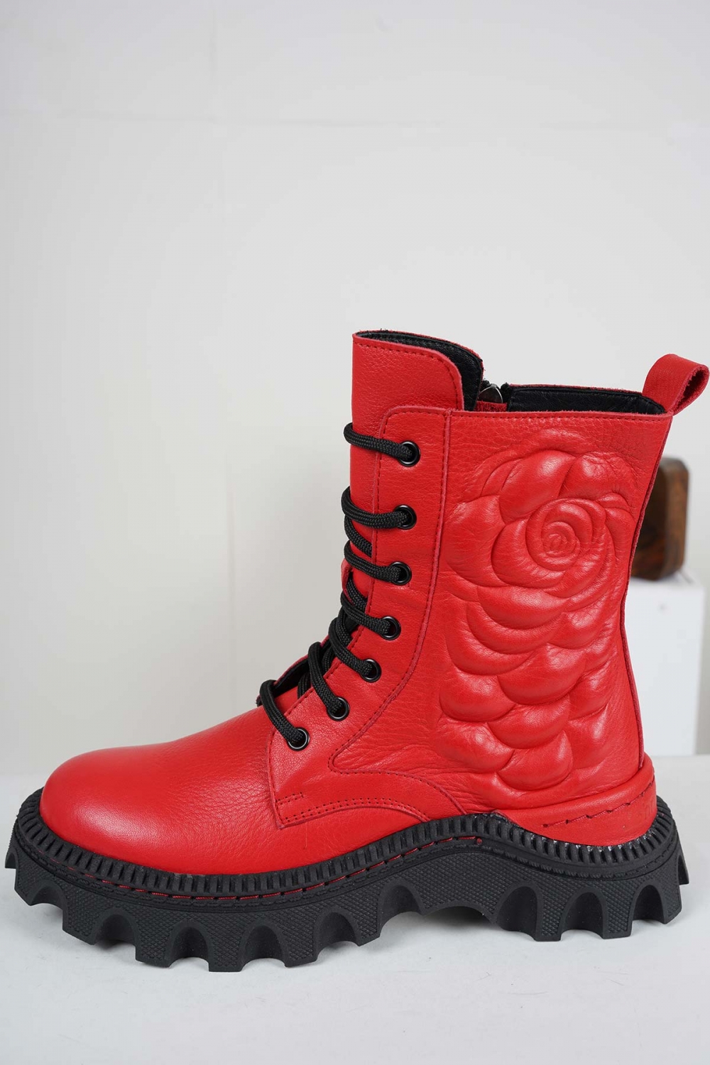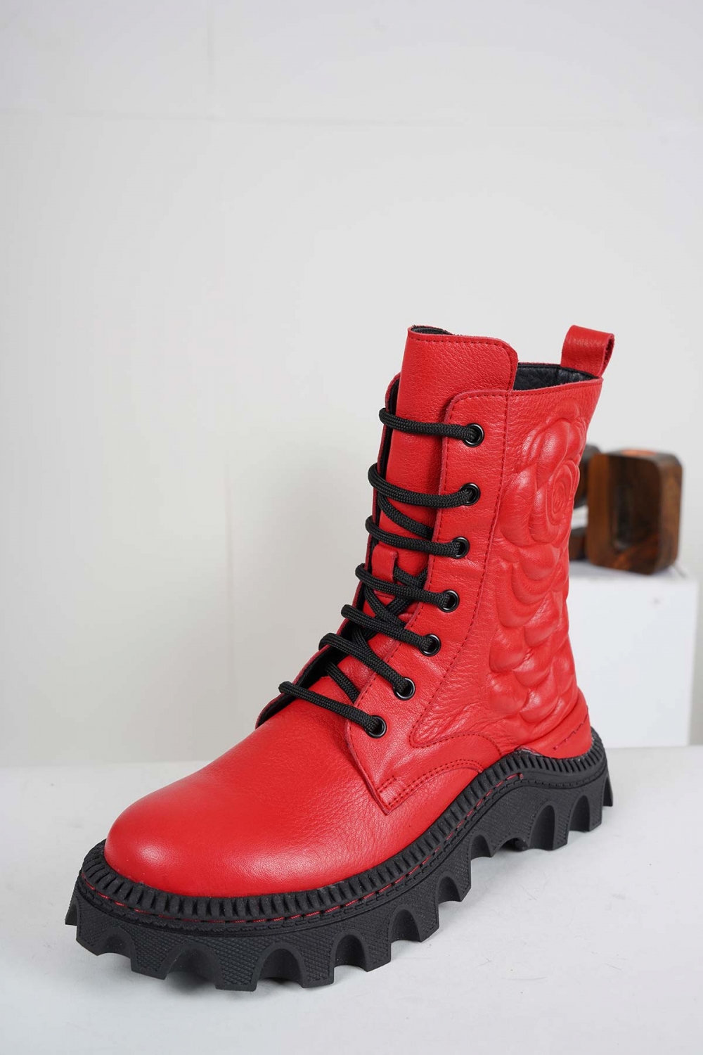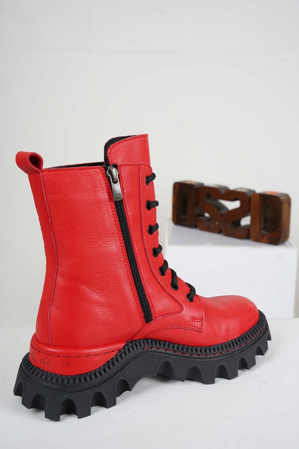 Hakiki Deri Kırmızı Kadın Postal Bot 242111203