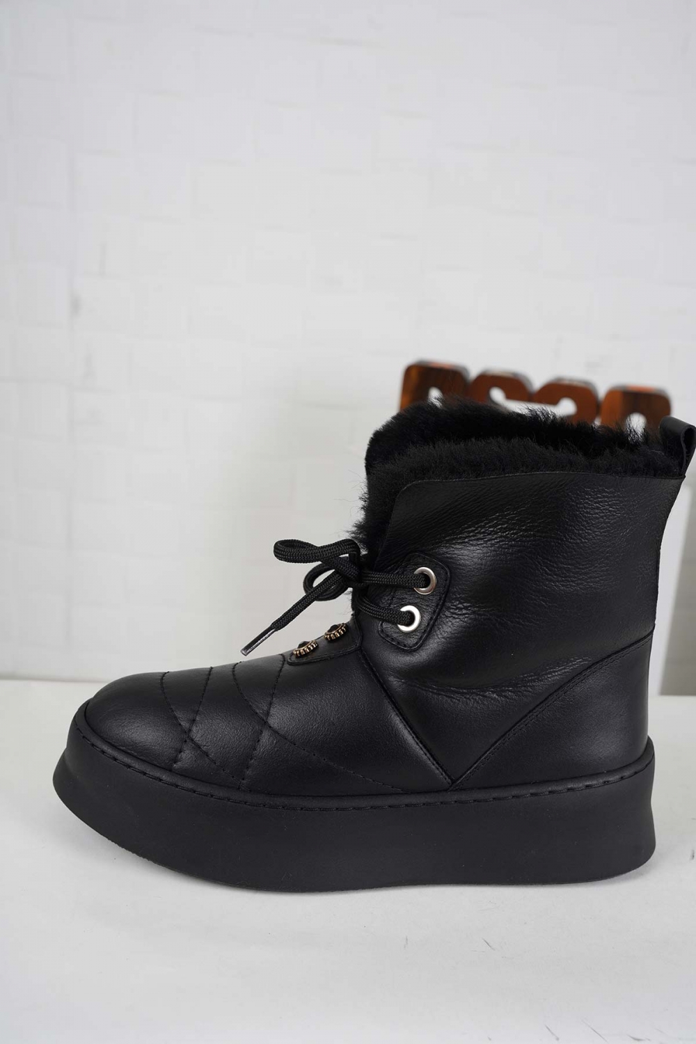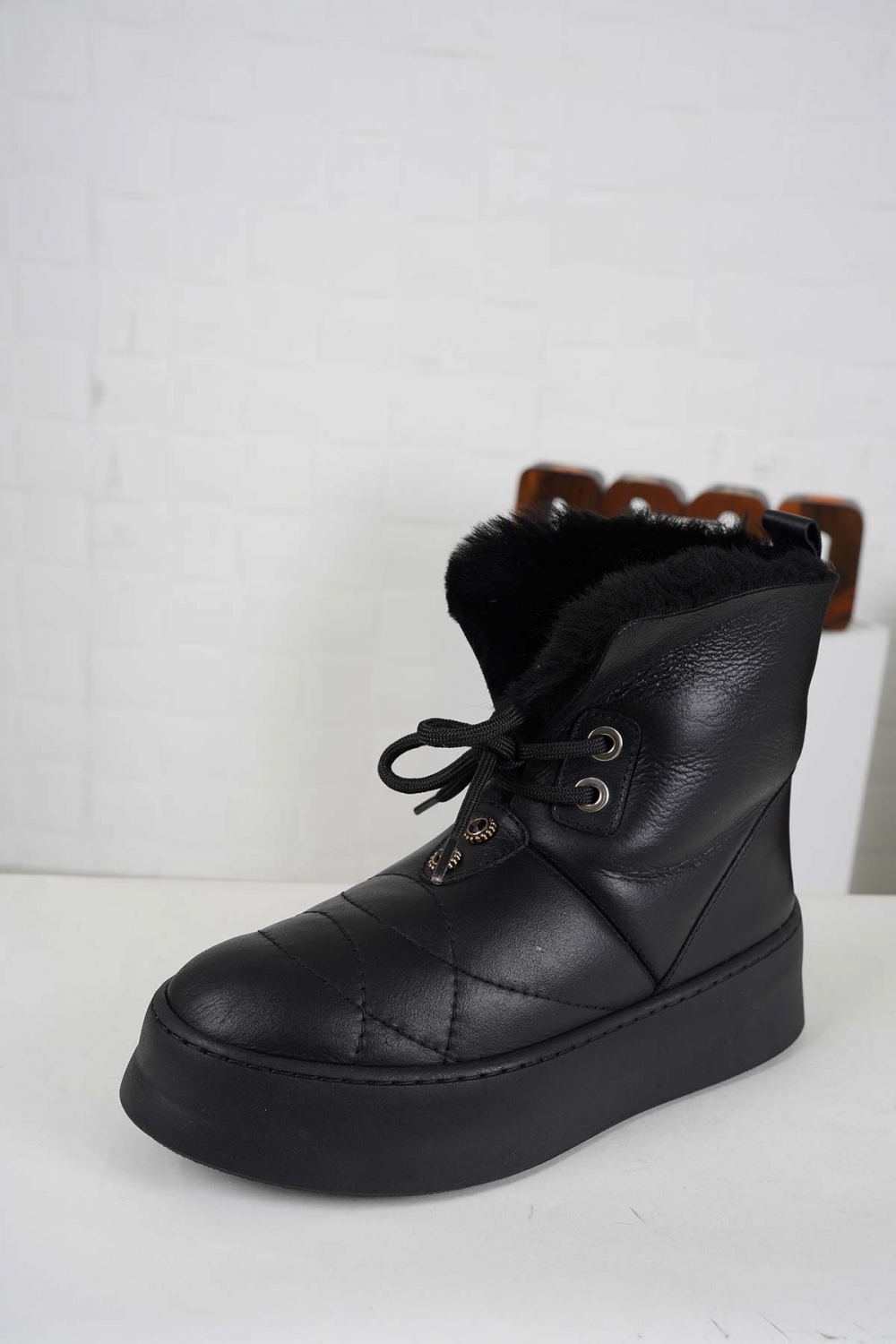Hakiki Deri Kürklü Siyah Kadın Kısa Bot 242225208