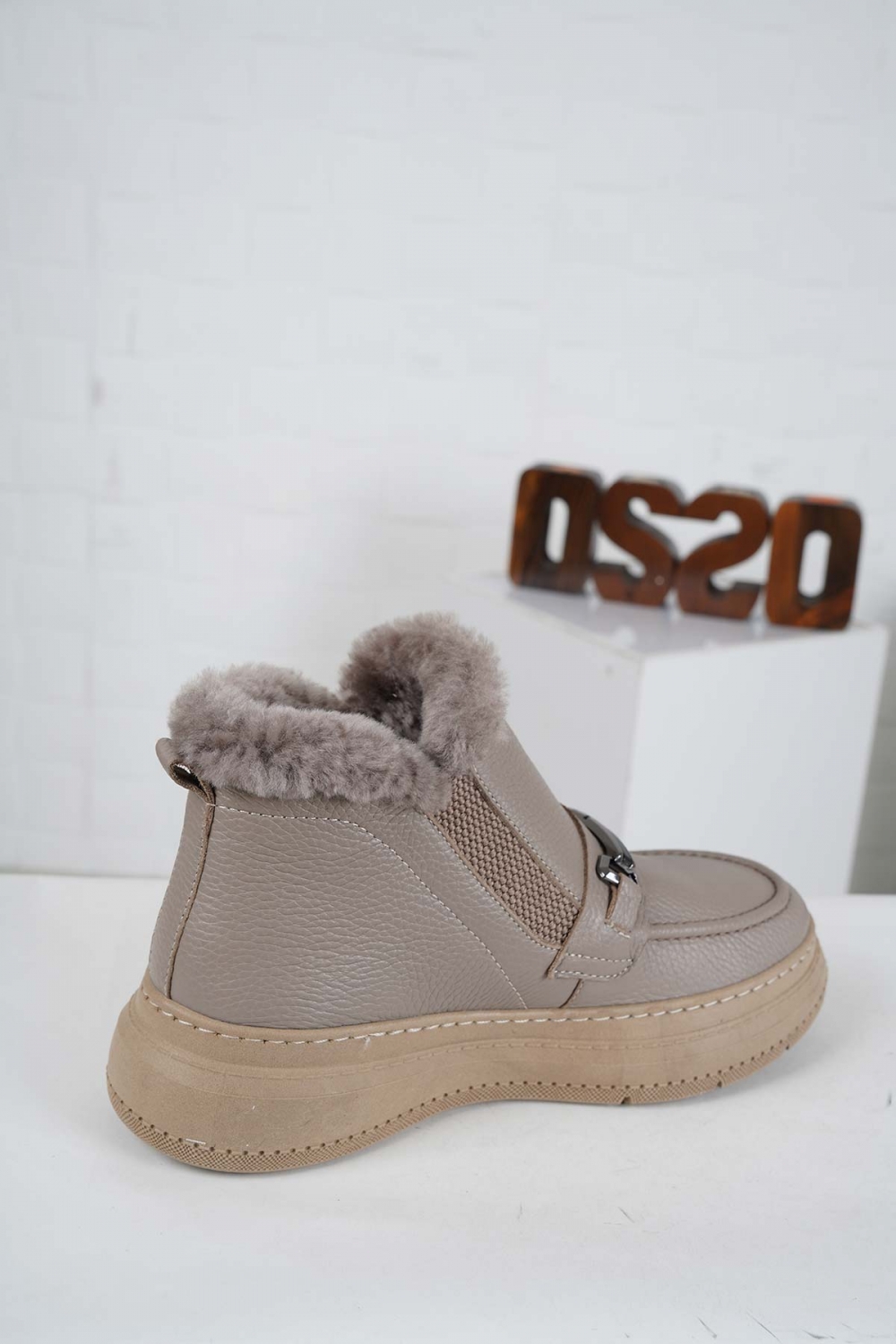 Hakiki Deri Kürklü Vizon Floter Kadın Kısa Bot 242225206