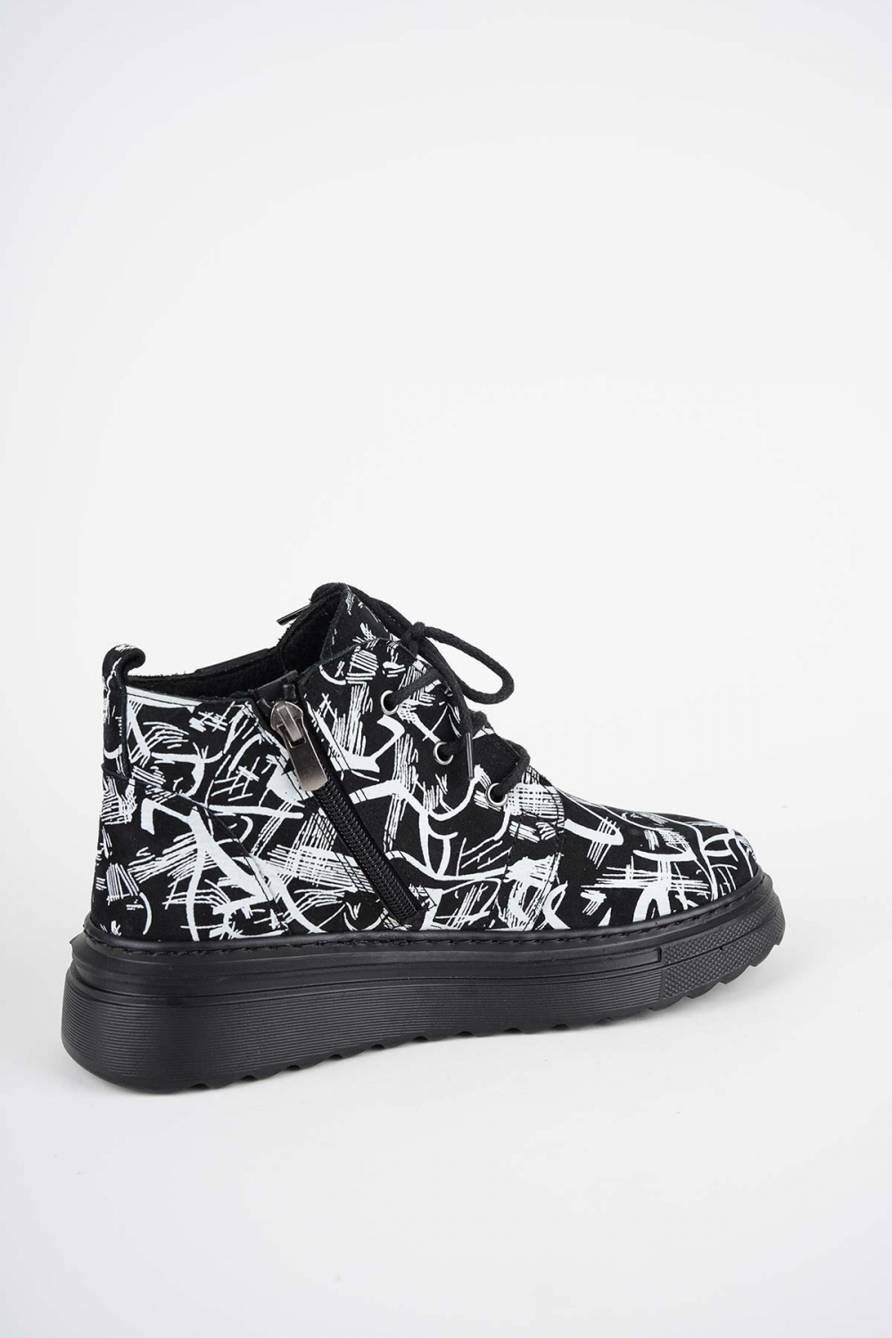Hakiki Deri Siyah Baskılı Kadın Casual Bot 252136213