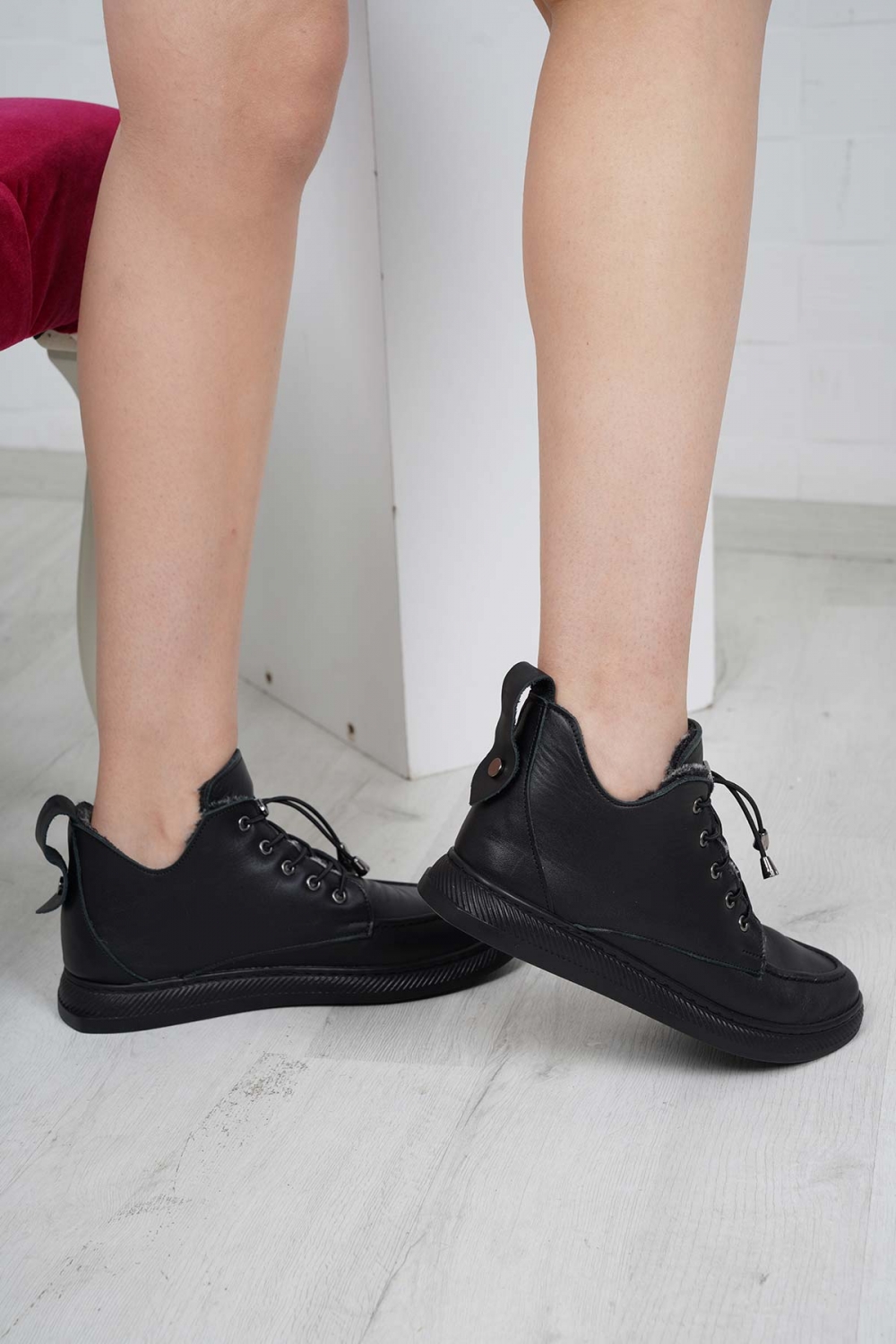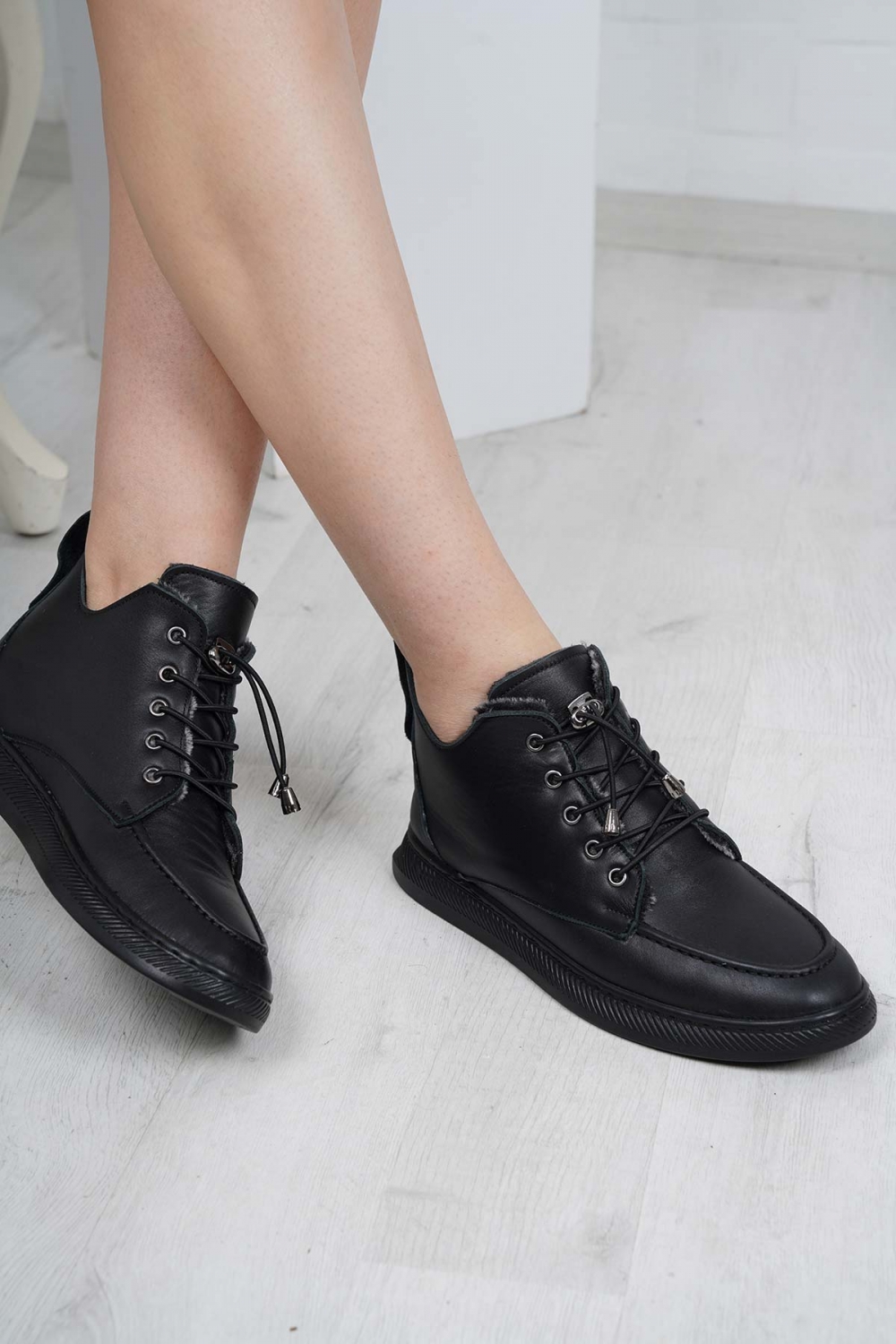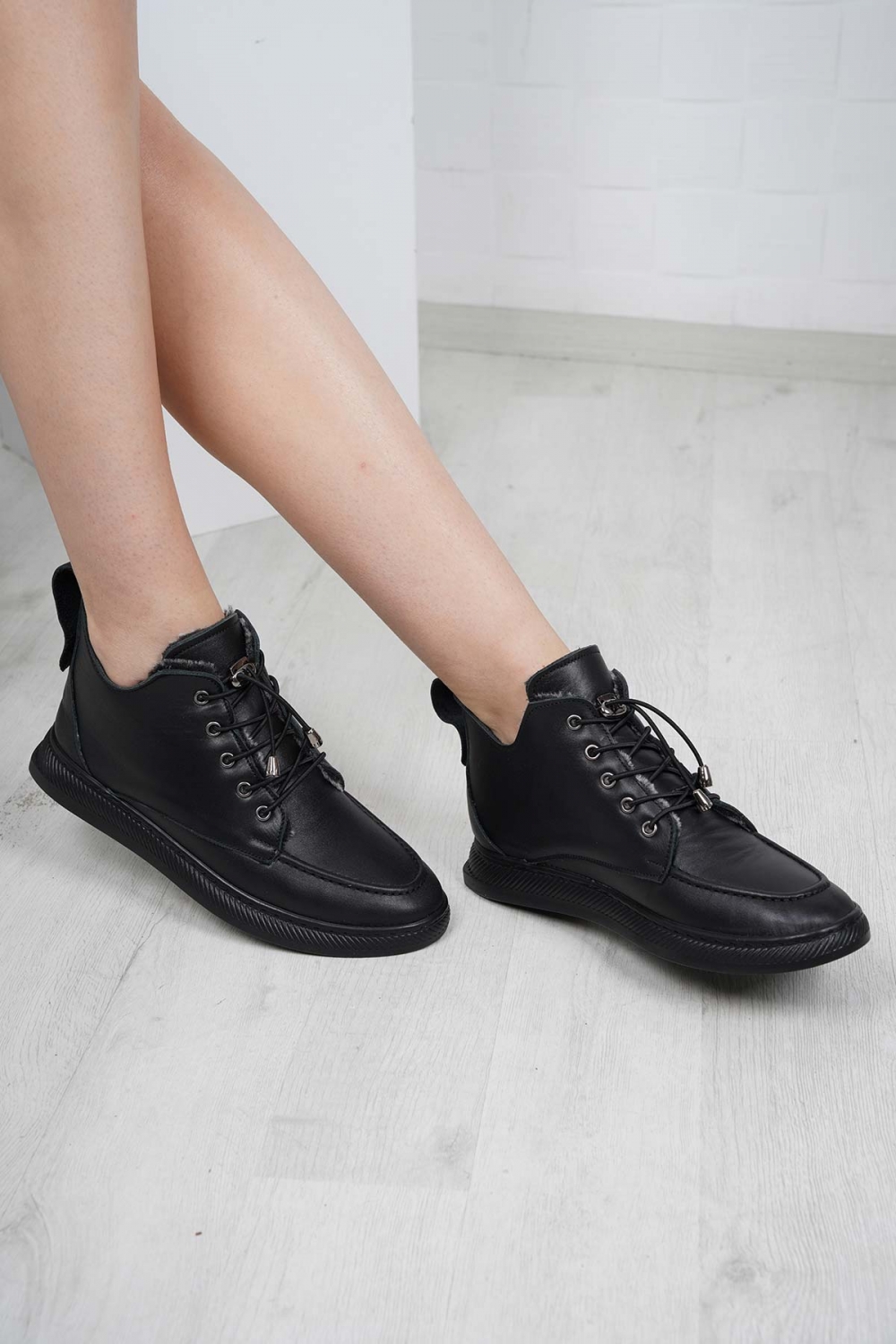 Hakiki Deri Kürklü Siyah Kadın Casual Bot 252189203