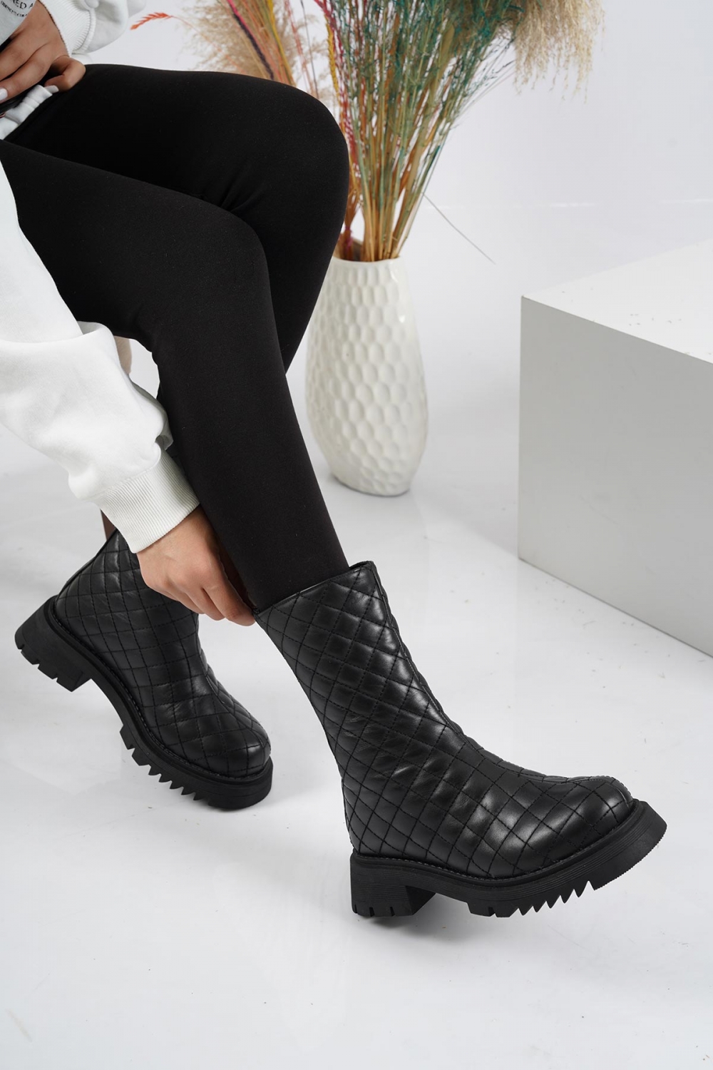 Hakiki Deri Siyah Kadın Casual Bot 252114203