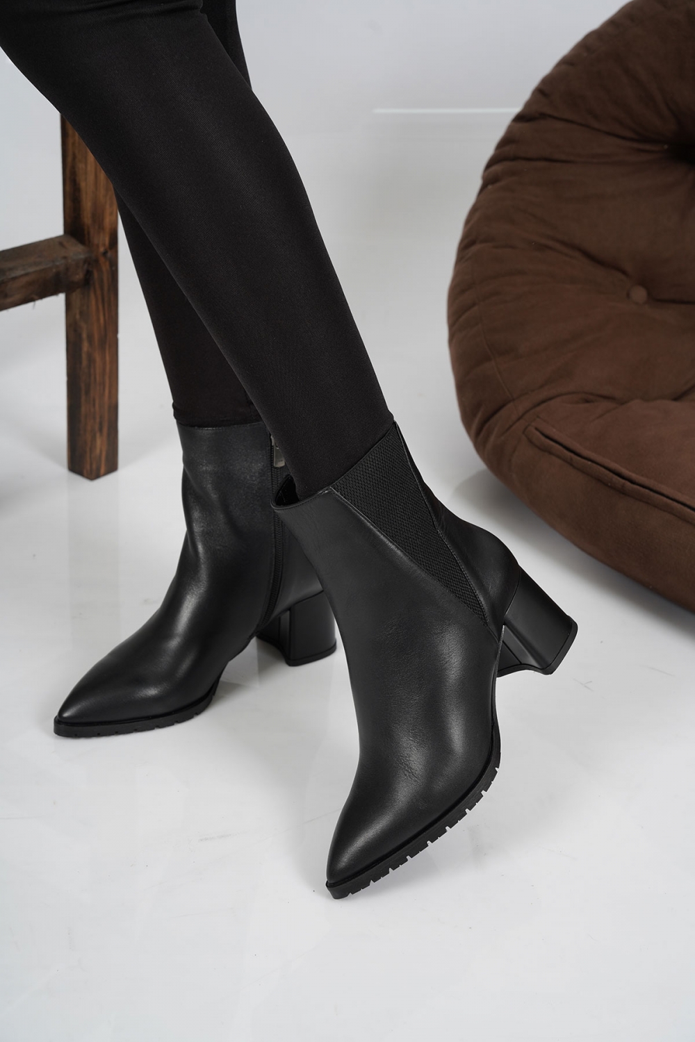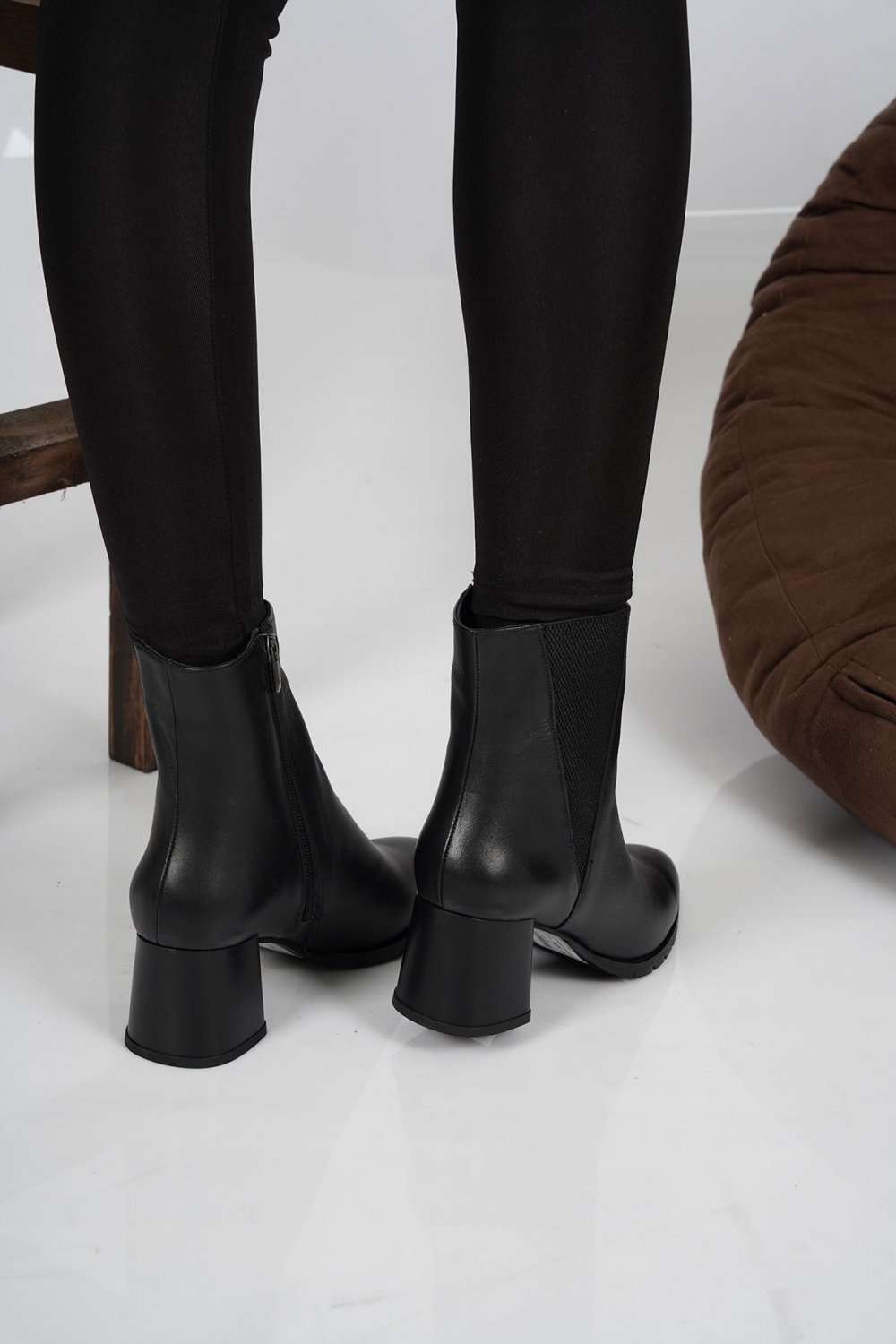 Hakiki Deri Siyah Kadın Topuklu Bot 222127207