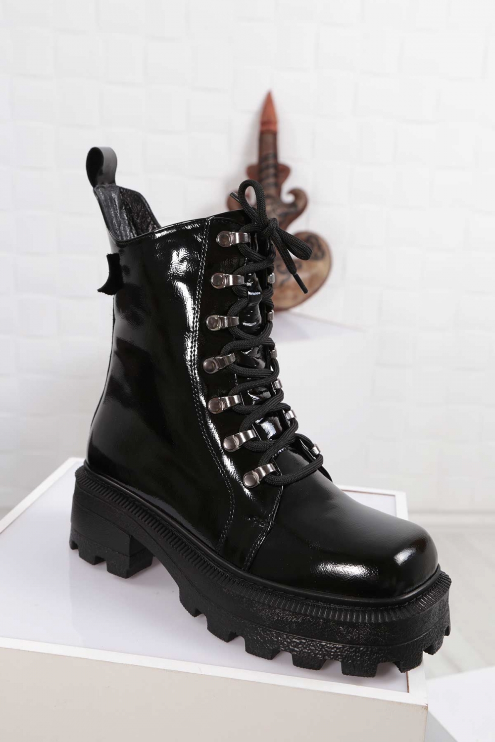 Hakiki Deri Siyah Baskılı Kadın Casual Bot 252136213