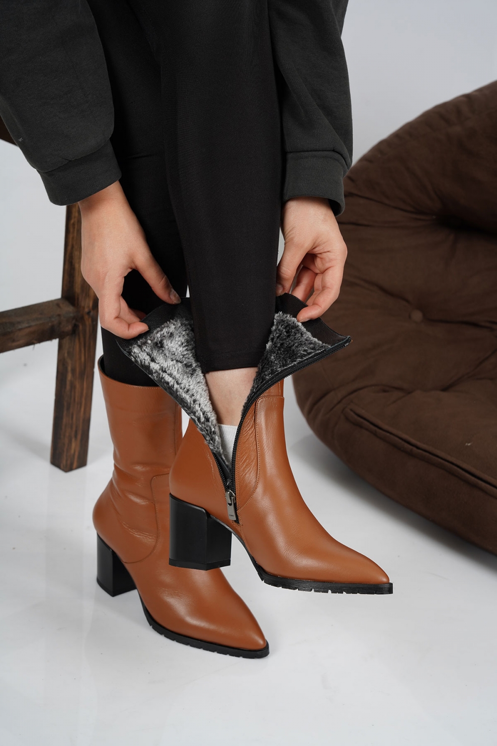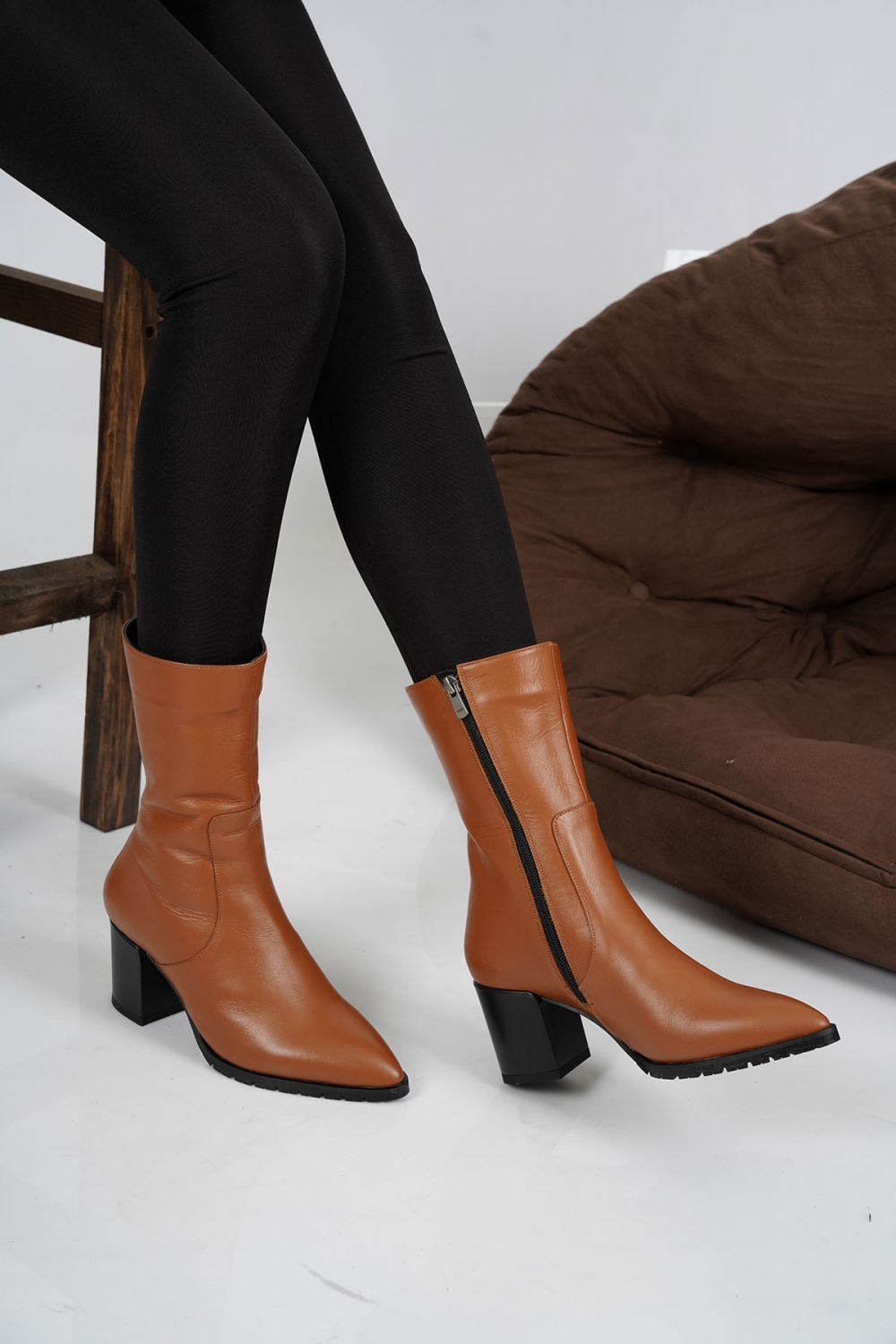 Hakiki Deri Taba Kadın Topuklu Bot 222127209