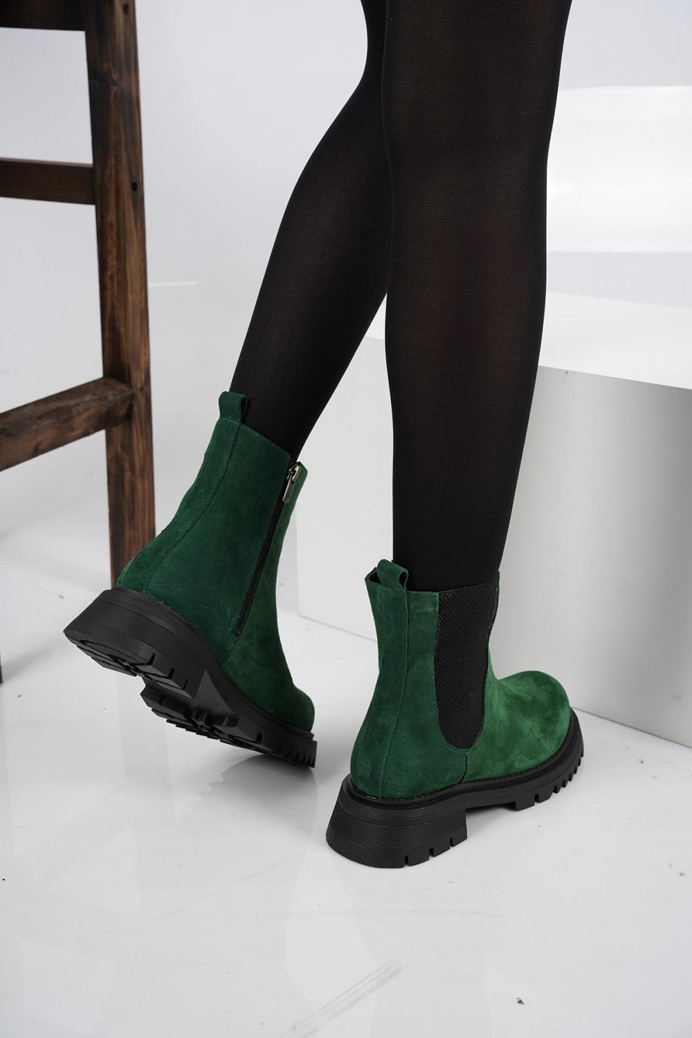 Hakiki Deri Yeşil Süet Kadın Düz Bot 212127231