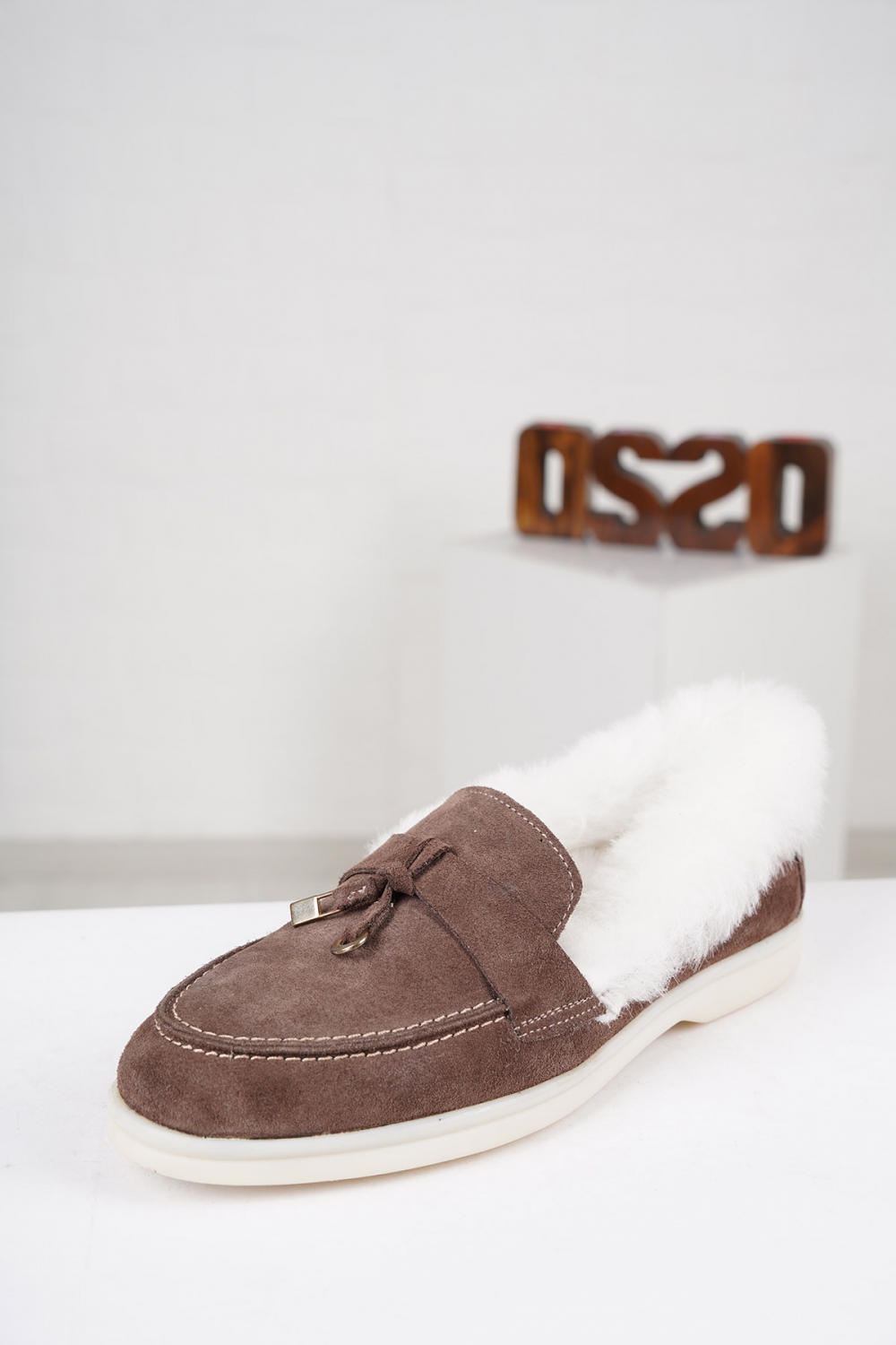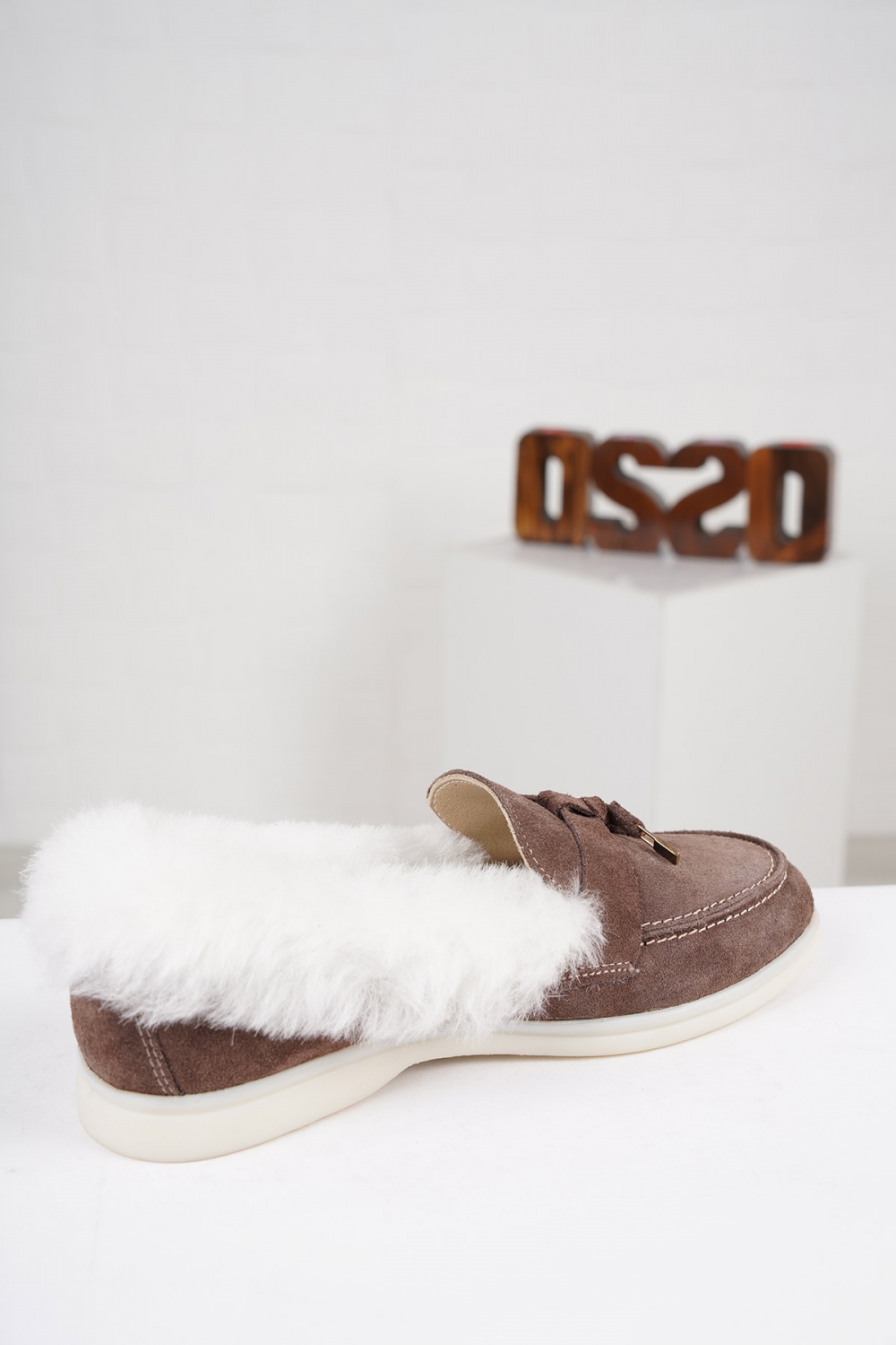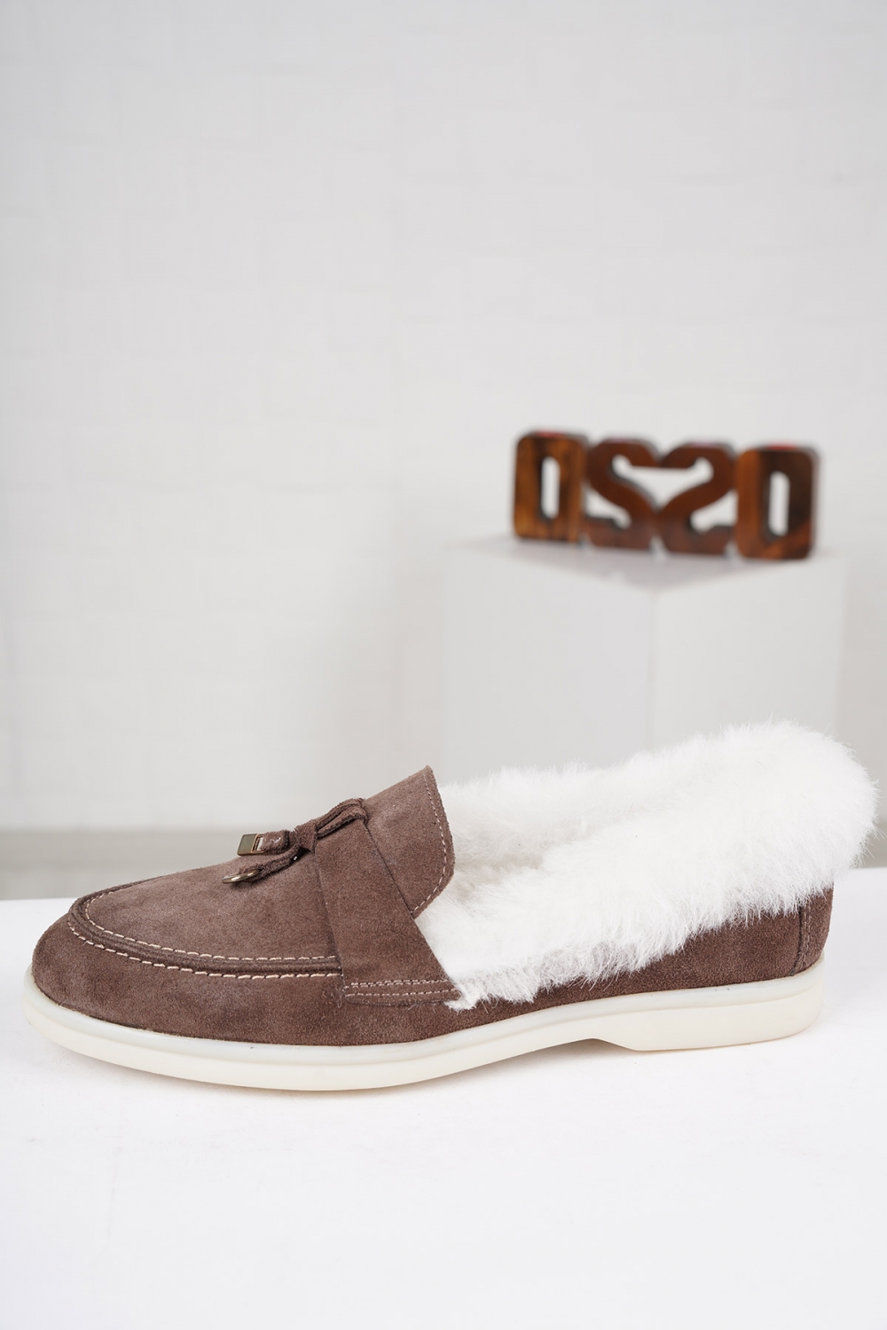 Hakiki Deri Kürklü Capuccino Süet Kadın Loafer Ayakkabı 222121101
