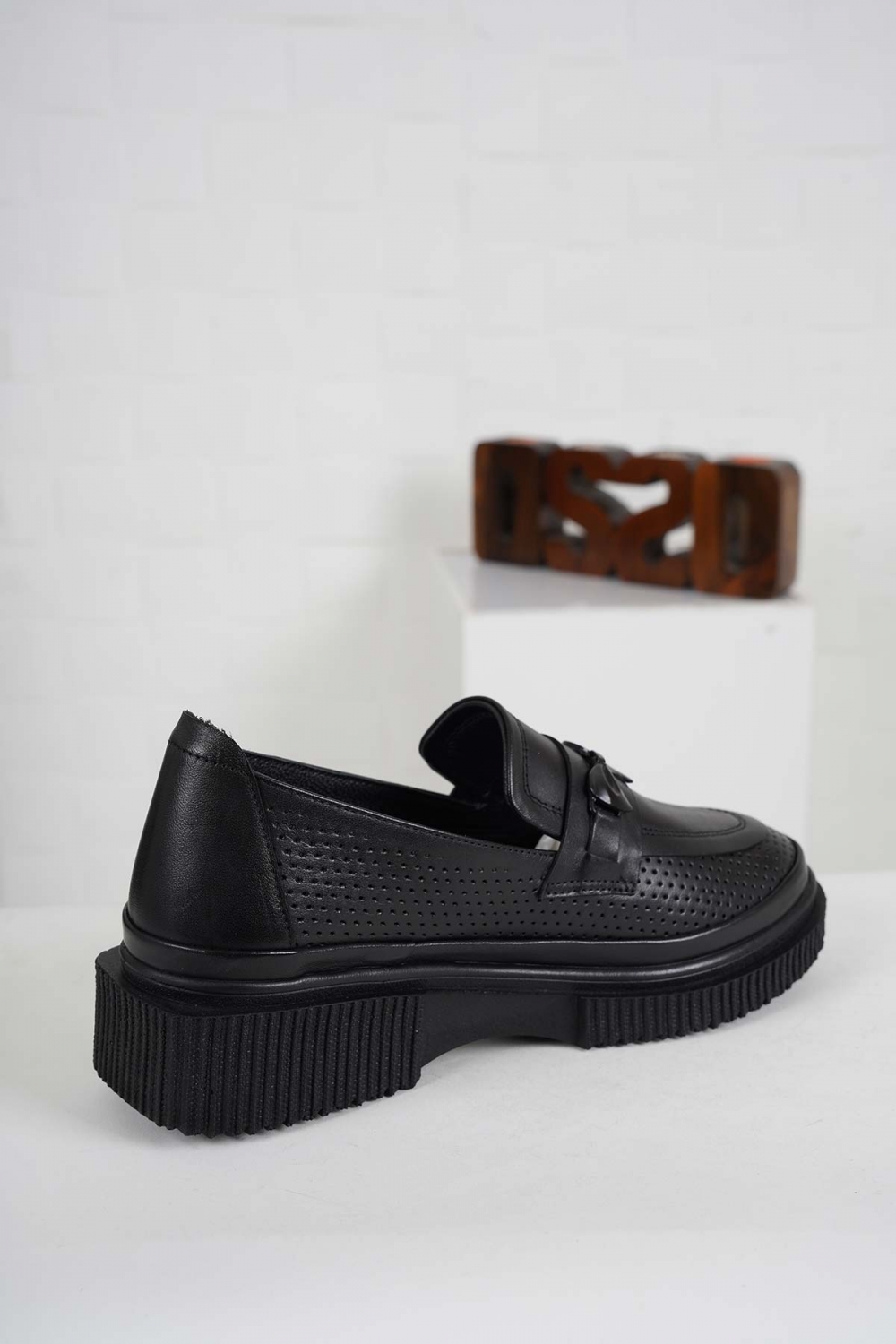 Hakiki Deri Siyah Floter Kadın Loafer Ayakkabı 252134103