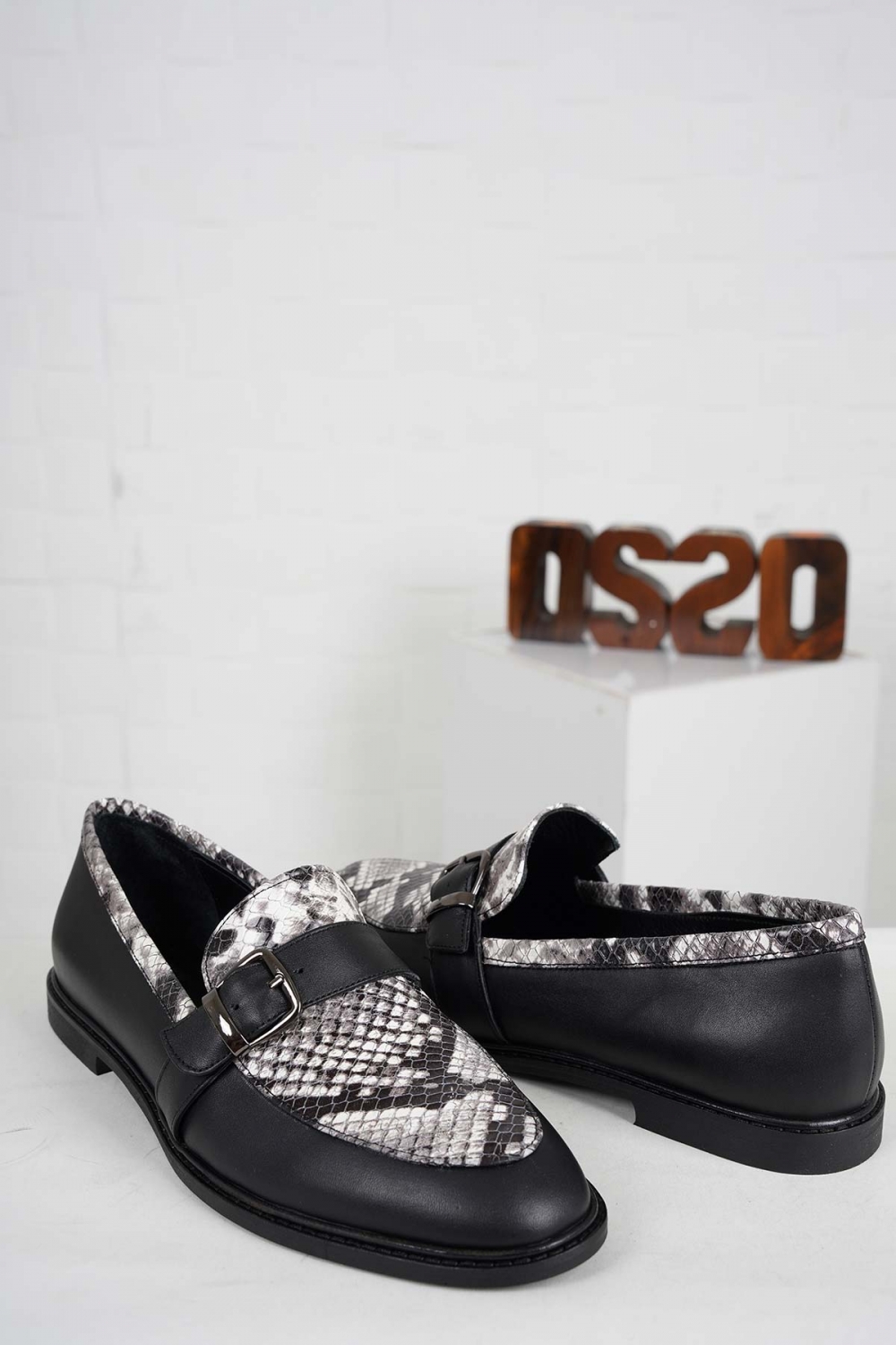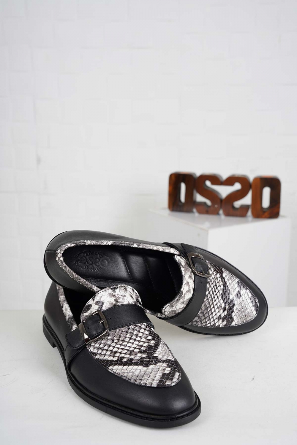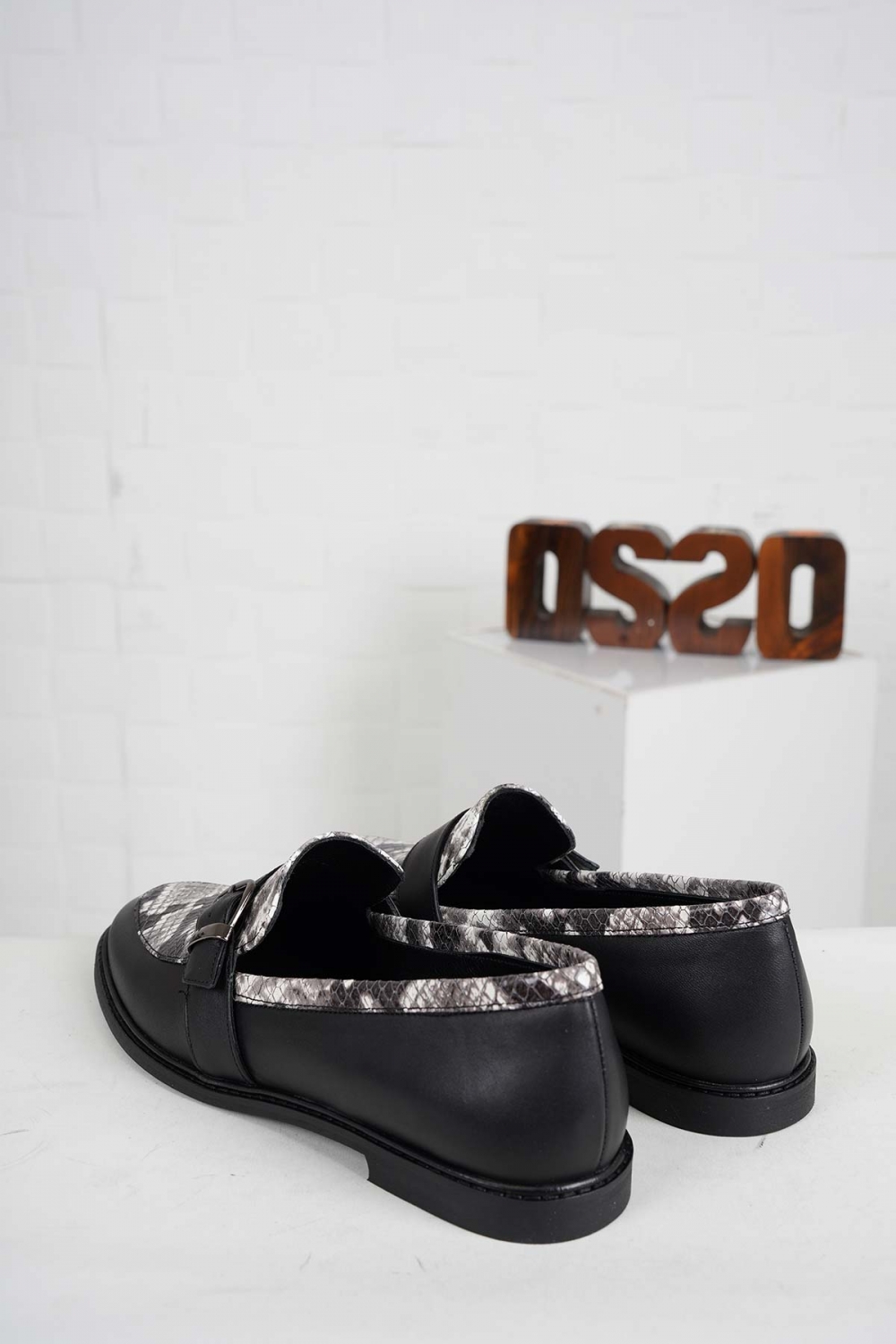 Hakiki Deri Siyah-Siyah Yılan Kadın Casual Ayakkabı 242127120