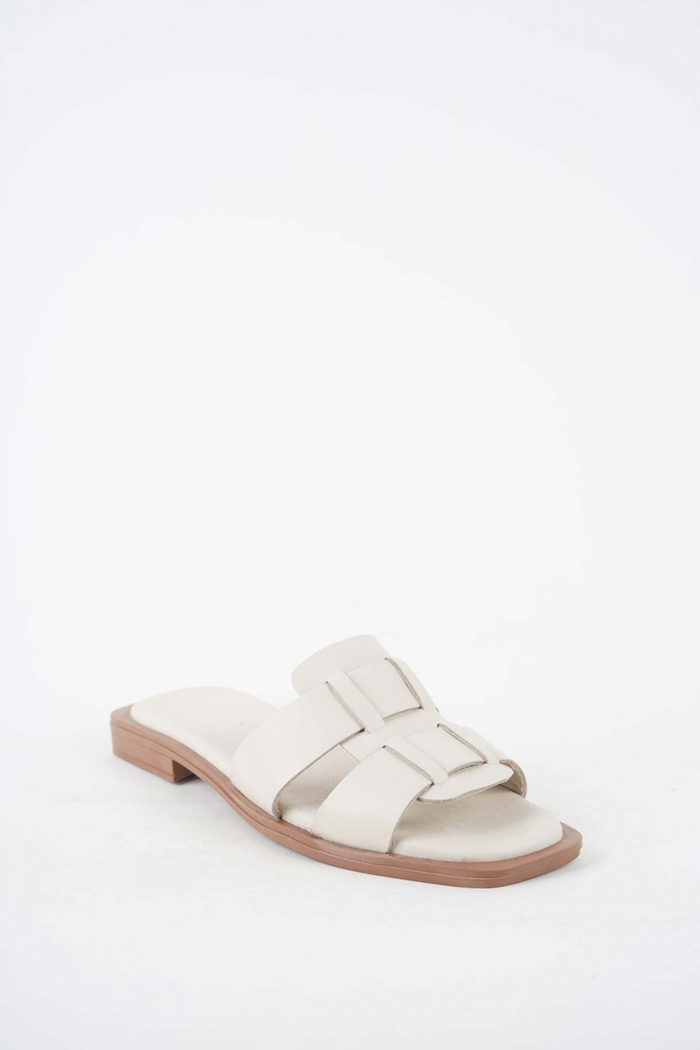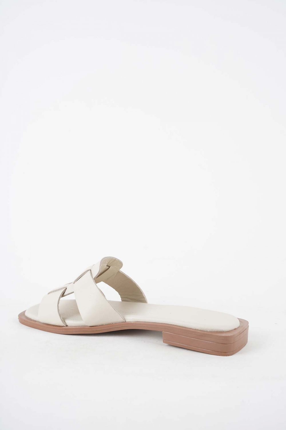 Hakiki Deri Bej Kadın Düz Terlik 251103607