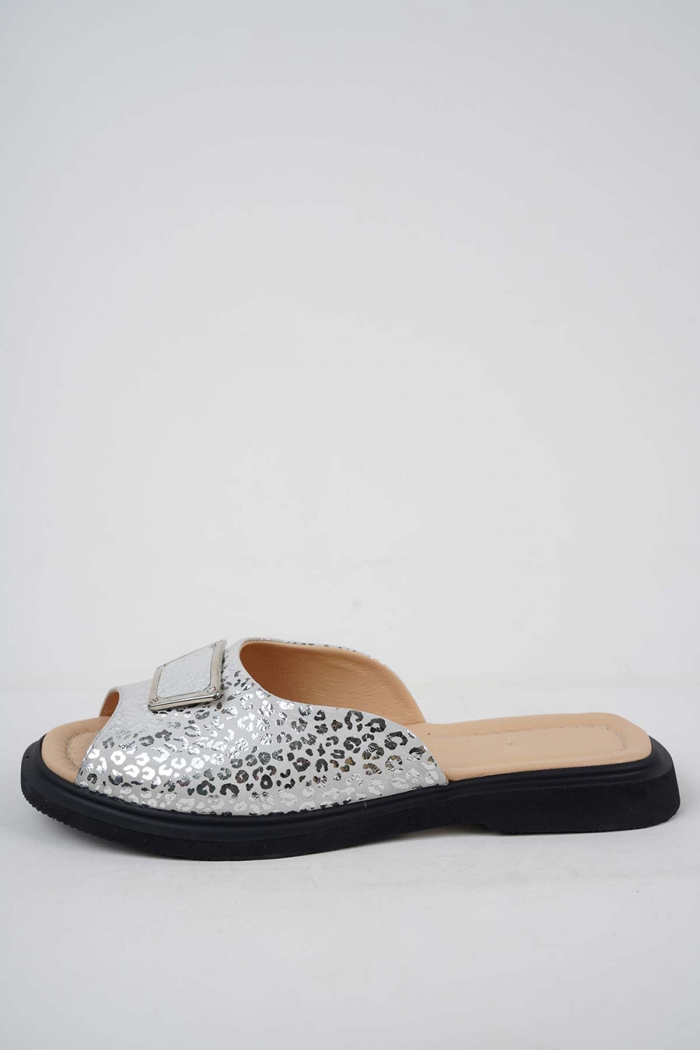 Hakiki Deri Beyaz Baskılı Kadın Düz Terlik 251189604