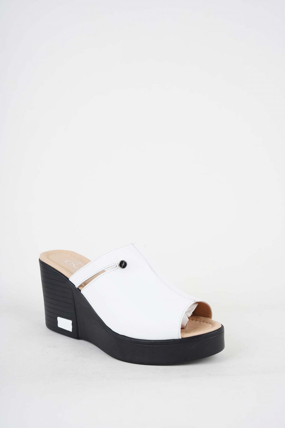 Hakiki Deri Beyaz Kadın Dolgu Topuklu Terlik 251189601