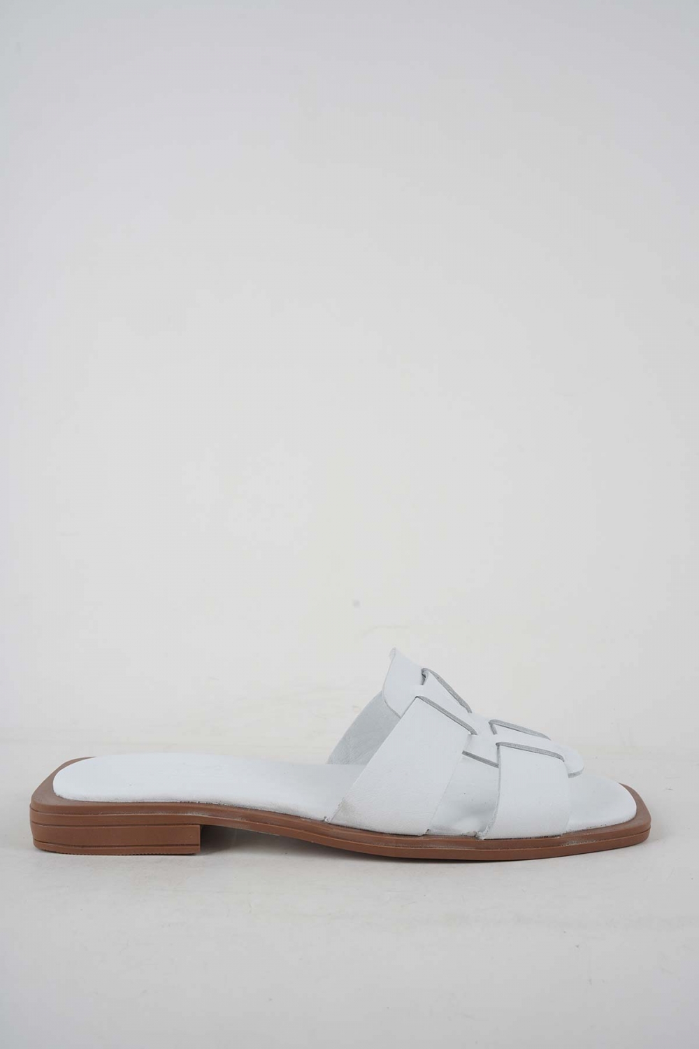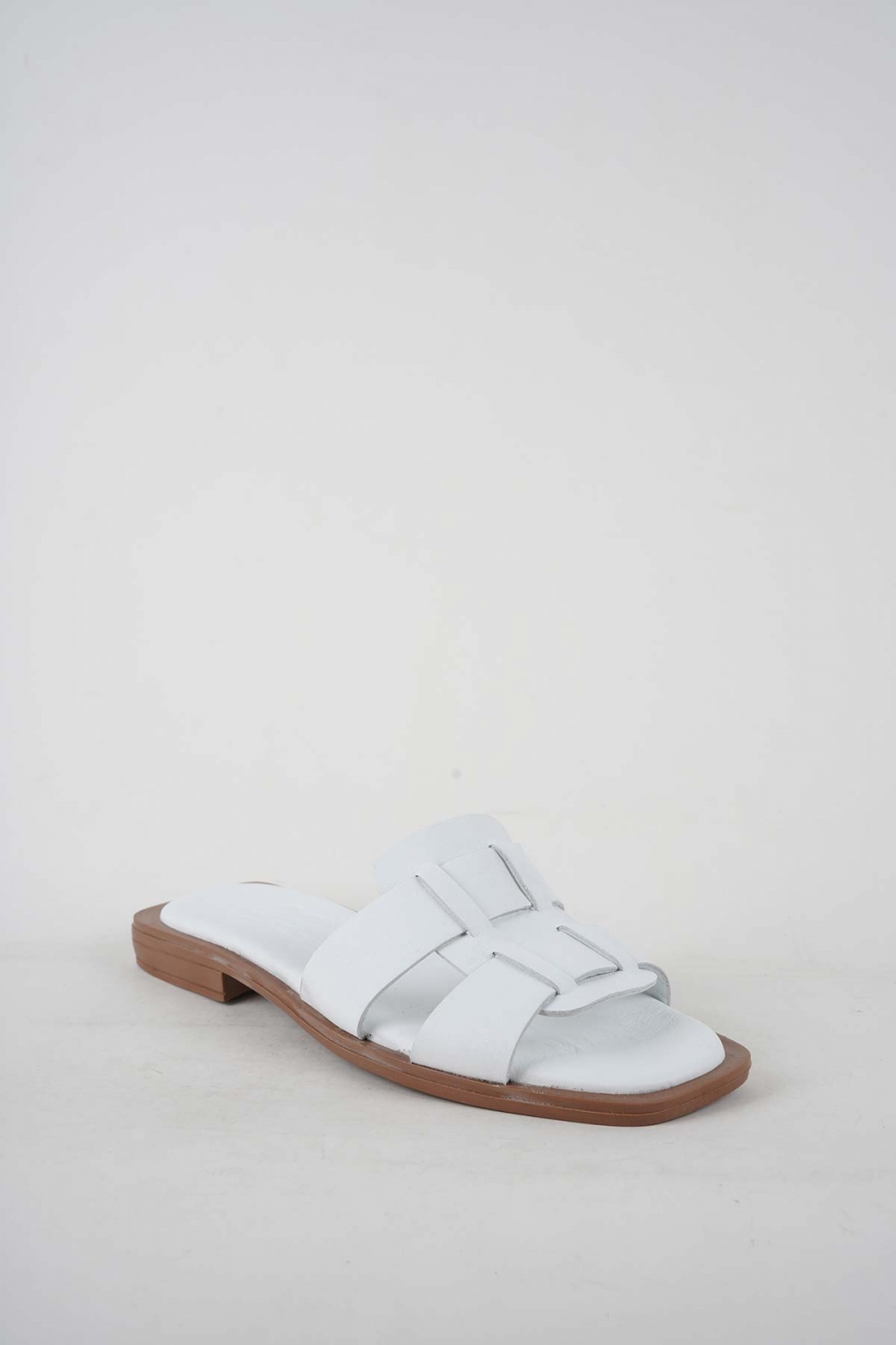 Hakiki Deri Beyaz Kadın Düz Terlik 251103607