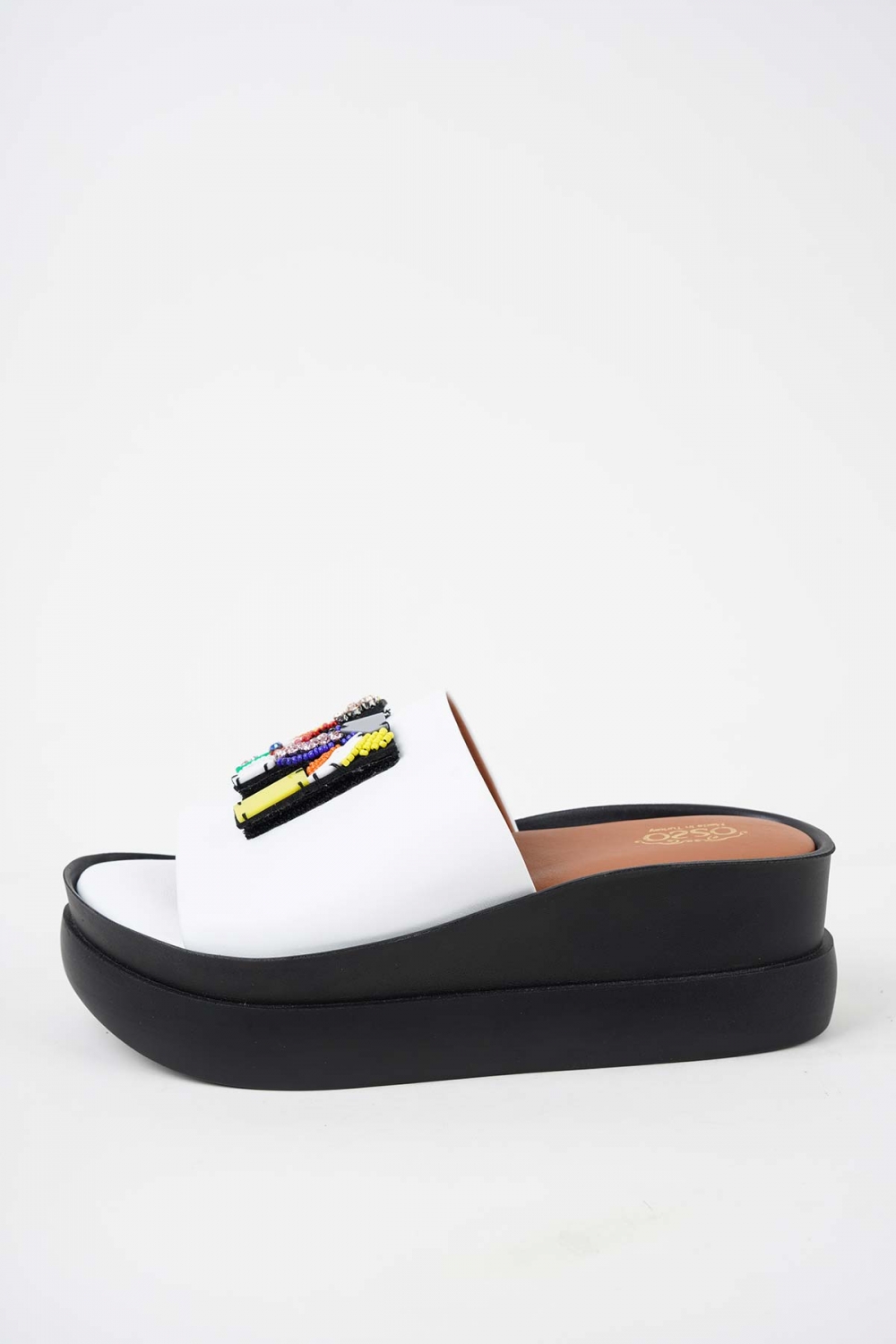 Hakiki Deri Beyaz_Siyah Tbn Kadın Dolgu Topuklu Terlik 251114601