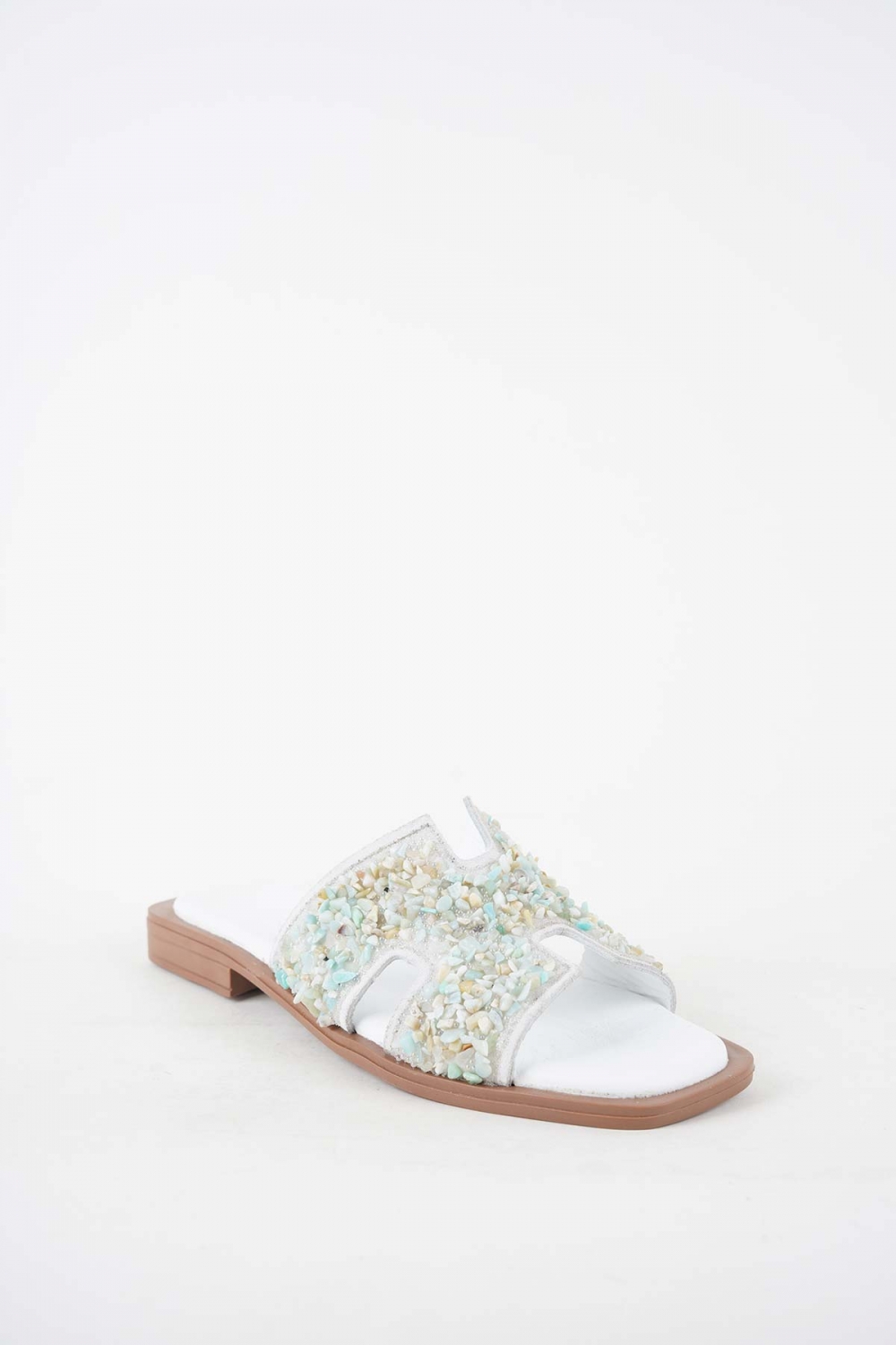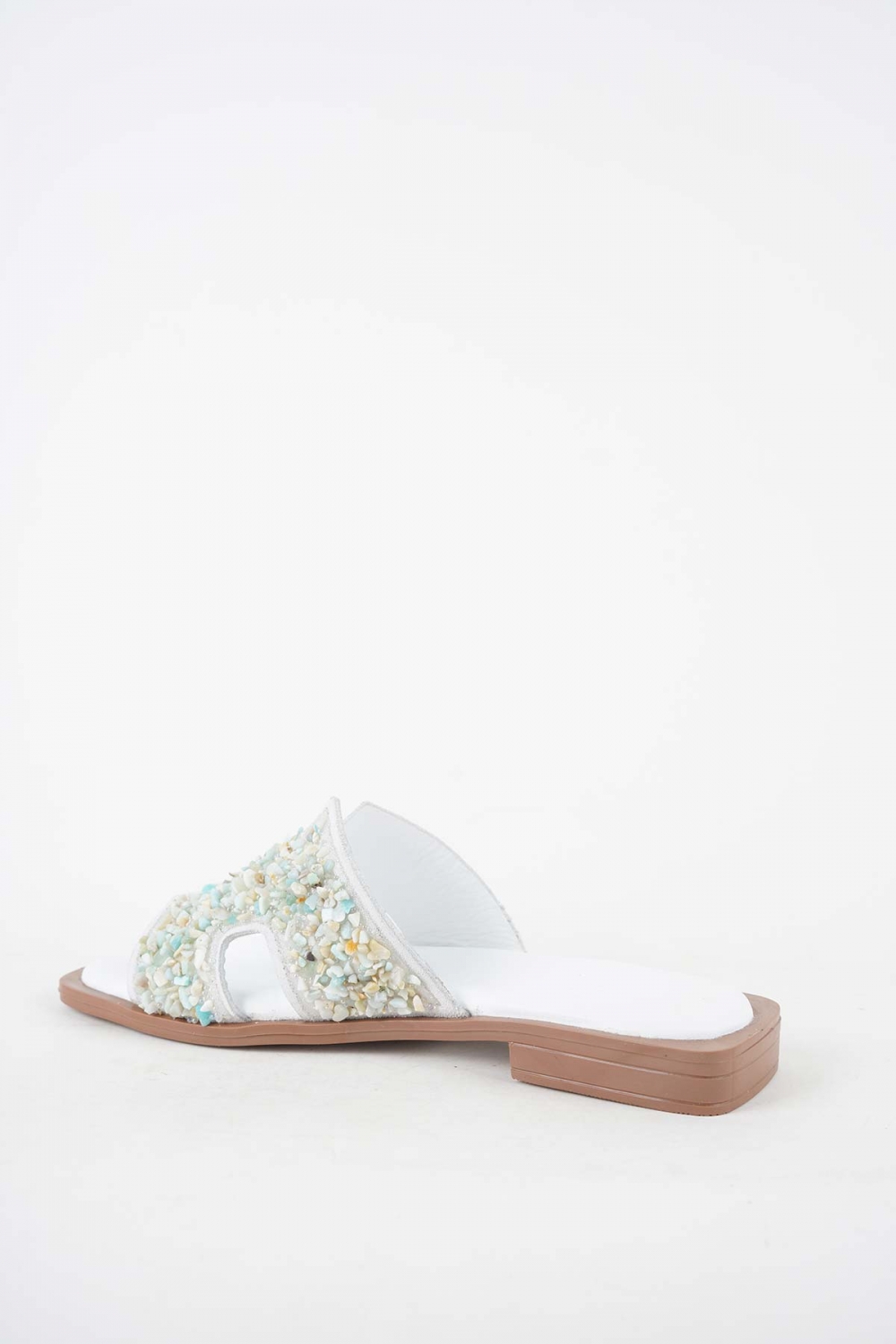Hakiki Deri Beyaz Taş Kadın Düz Terlik 251103608