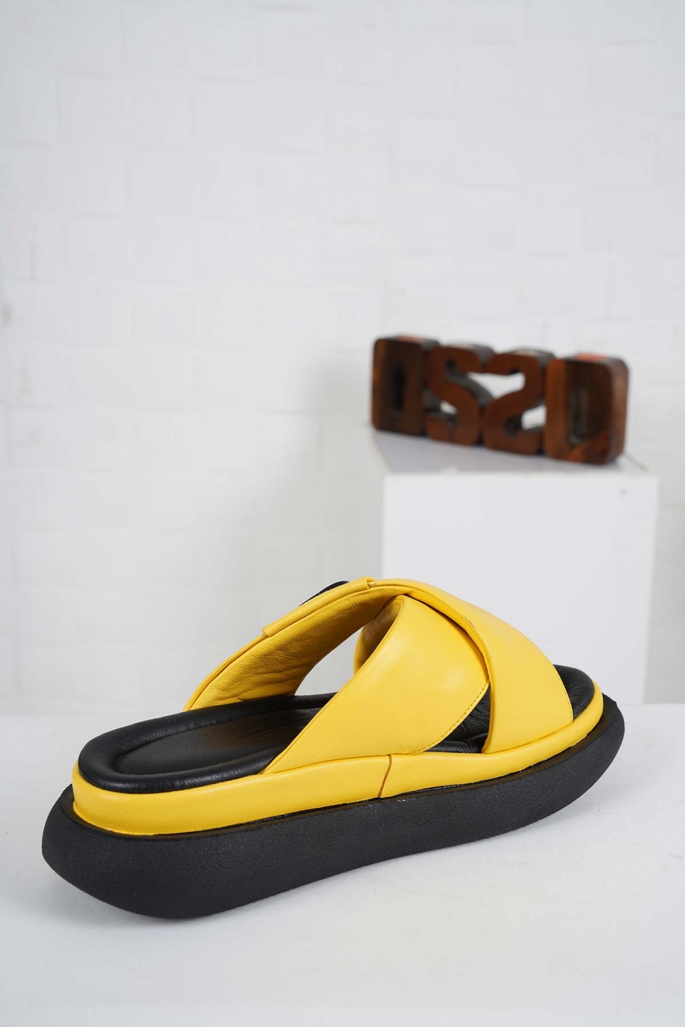 Hakiki Deri Sarı Kadın Komfort Terlik 241229605