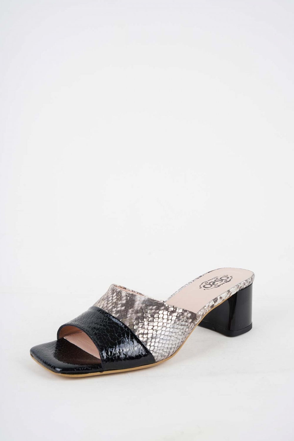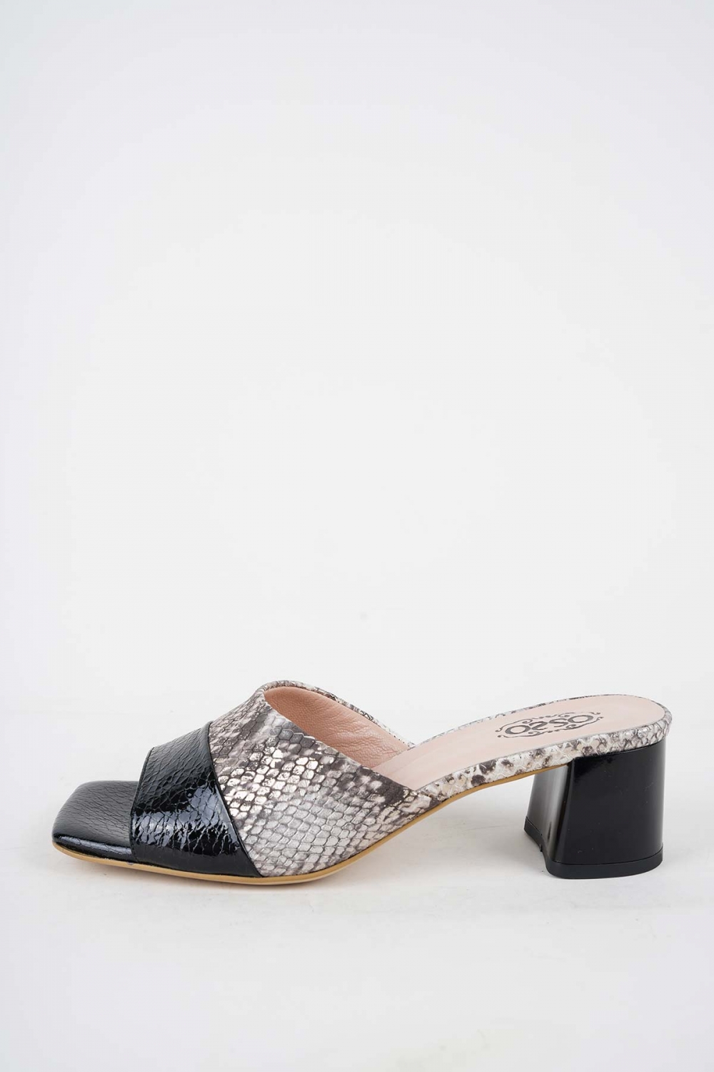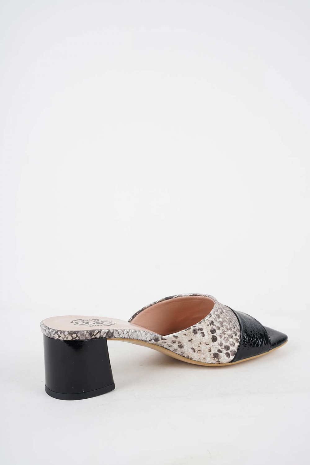 Hakiki Deri Siyah Kırık Rug-Bej Piton Kadın Topuklu Terlik 251127600