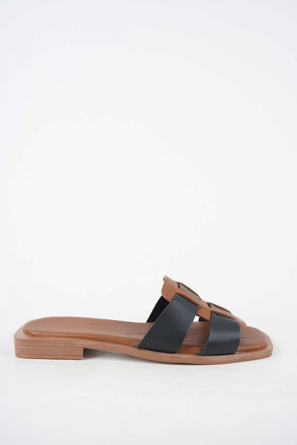 Hakiki Deri Taba-Siyah Kadın Düz Terlik 251103607
