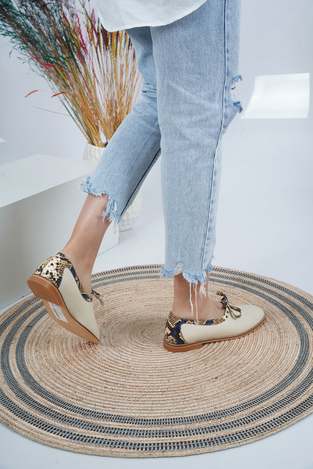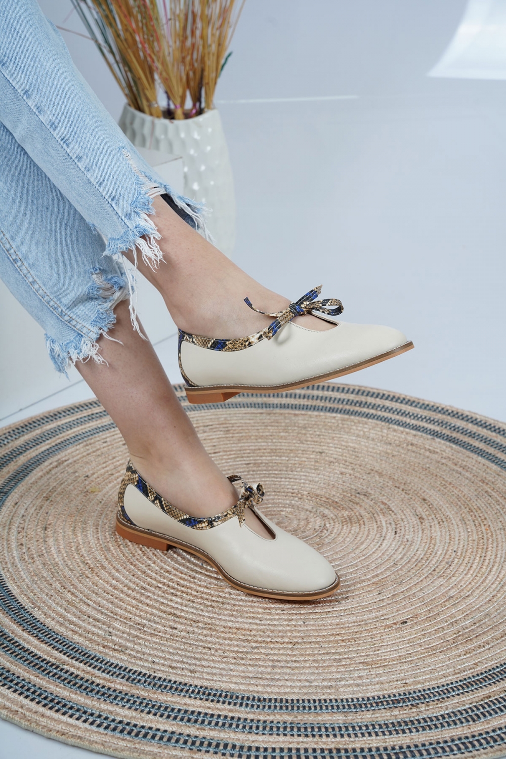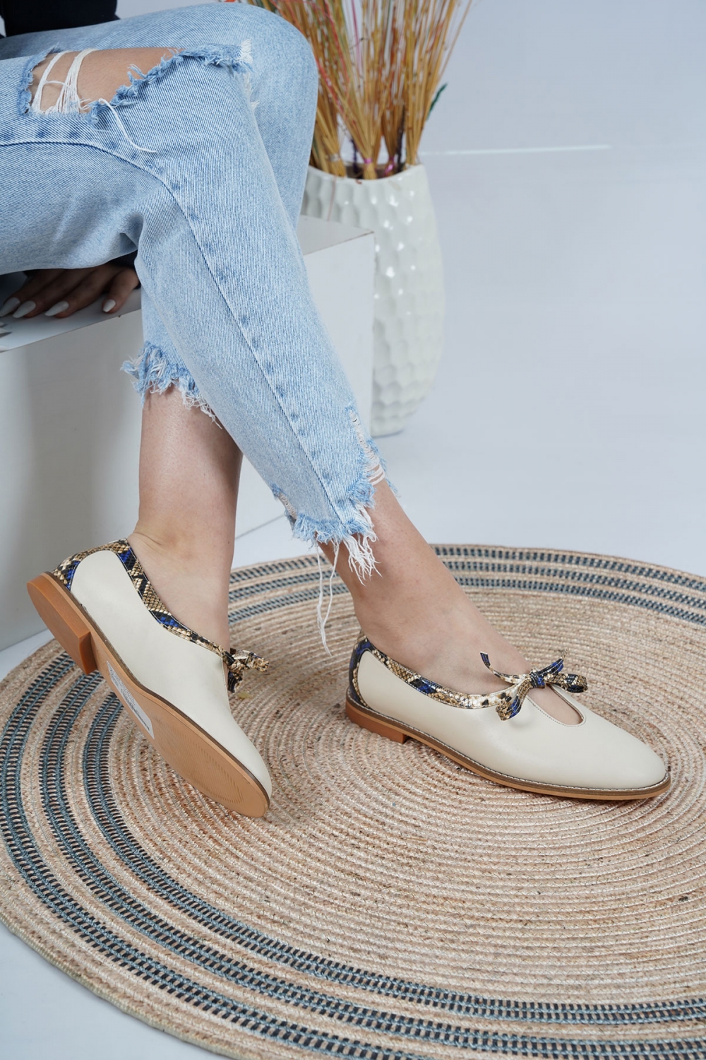 Hakiki Deri Bej-Piton Kadın Babet Ayakkabı 231127111